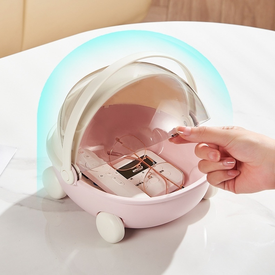 机の上やベッドサイドに置いて使えるコンパクト収納◎