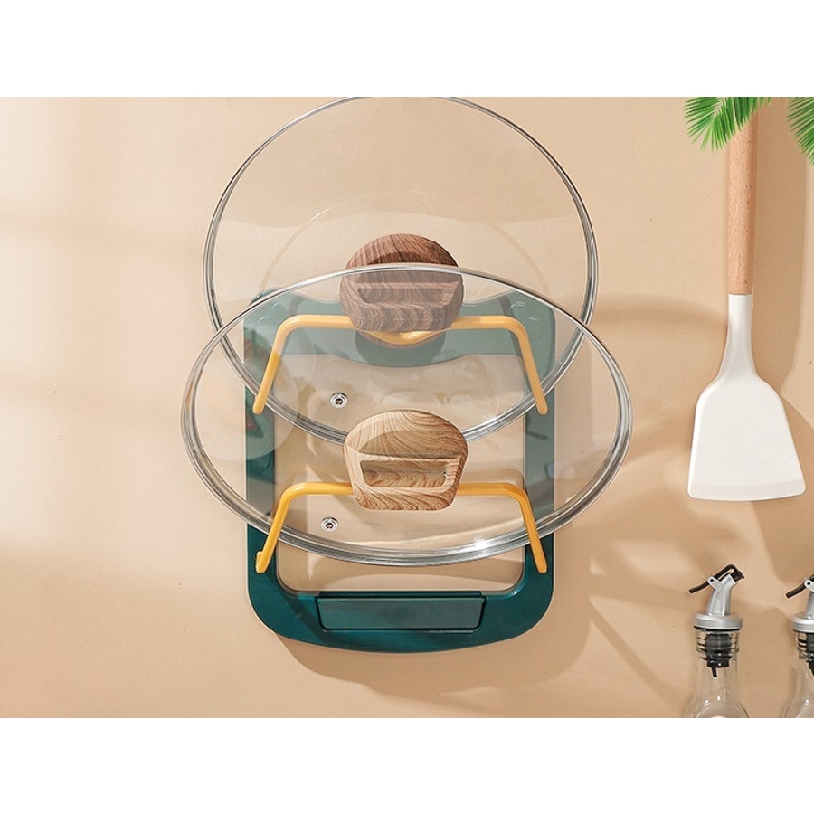2段式で、鍋蓋以外にもまな板や調理用具なども収納できます。