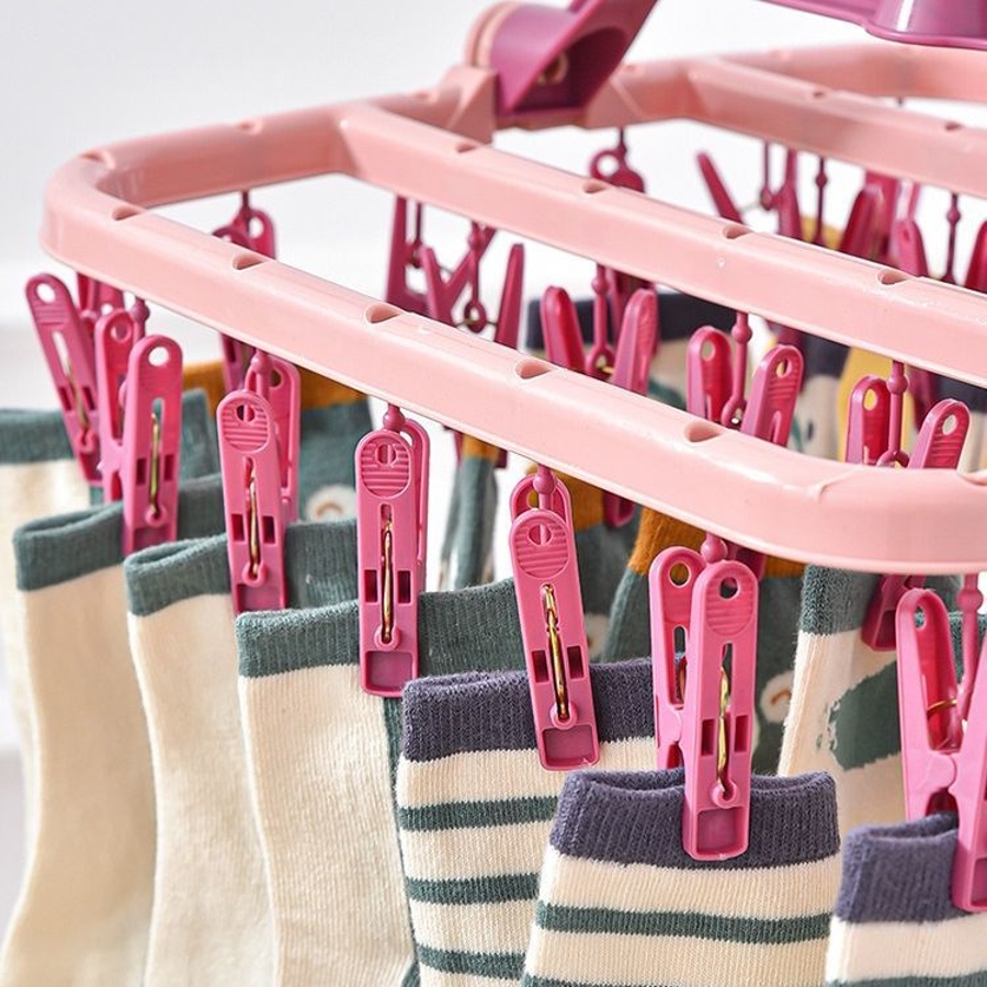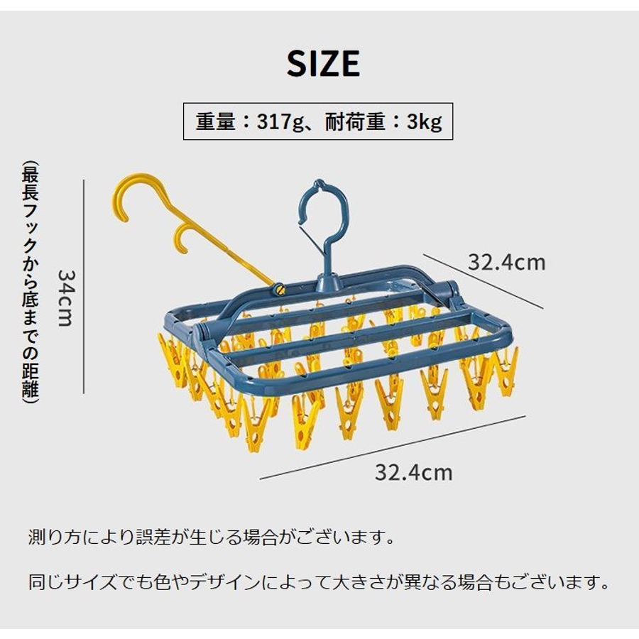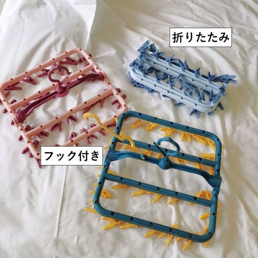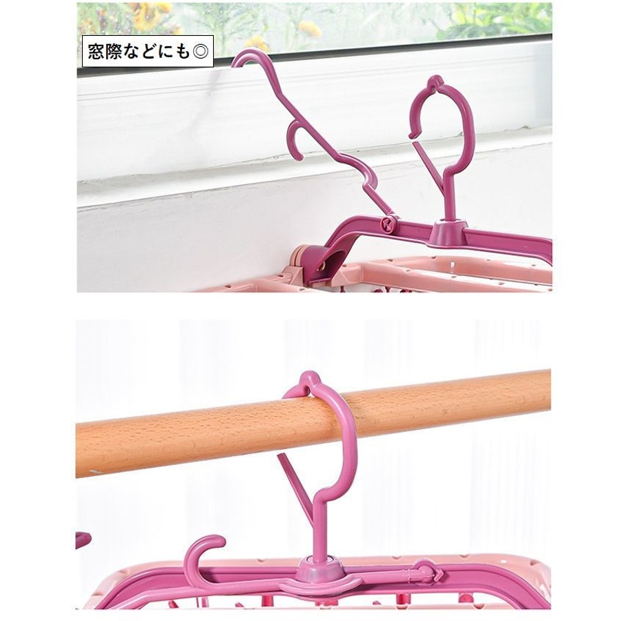 長いフック付きで窓際や手すりにも掛けられ、室内でもベランダでも便利に使えます◎