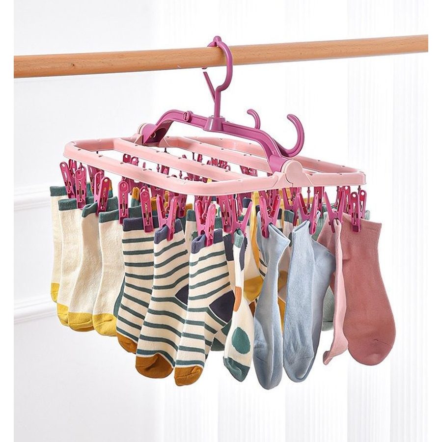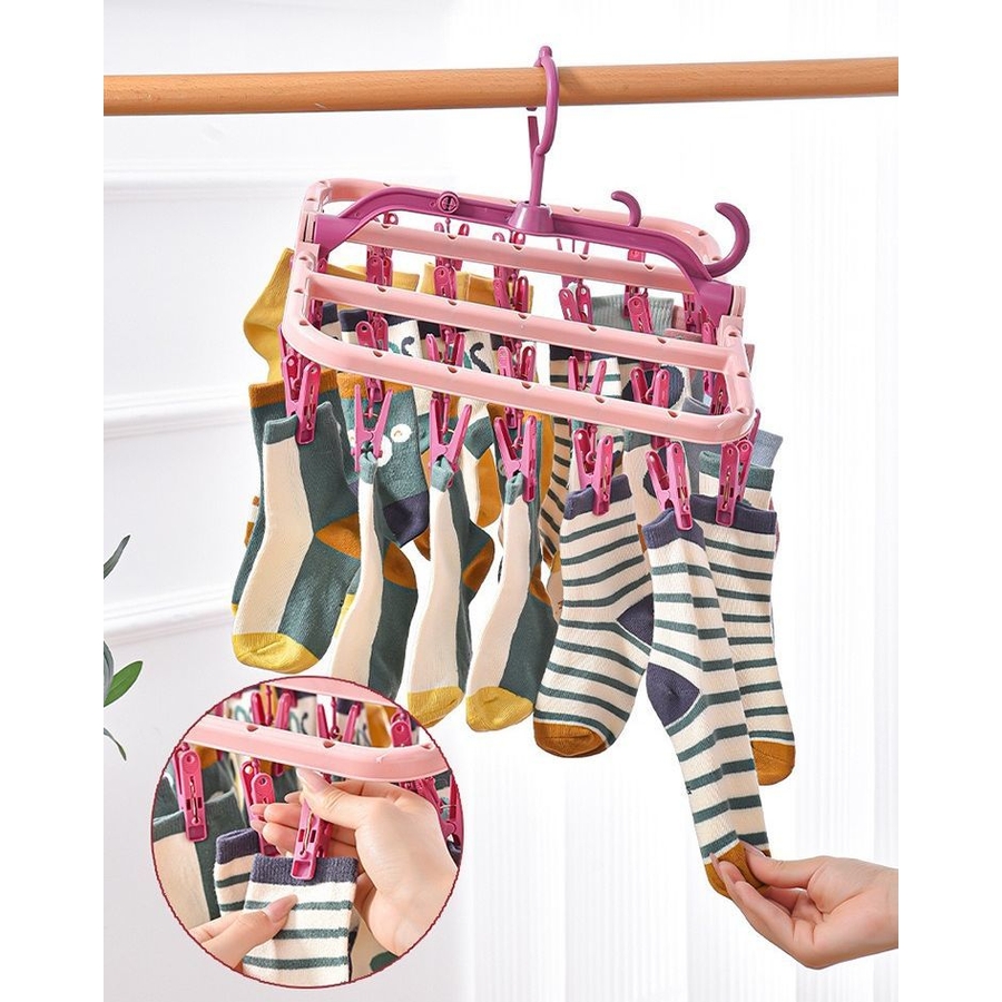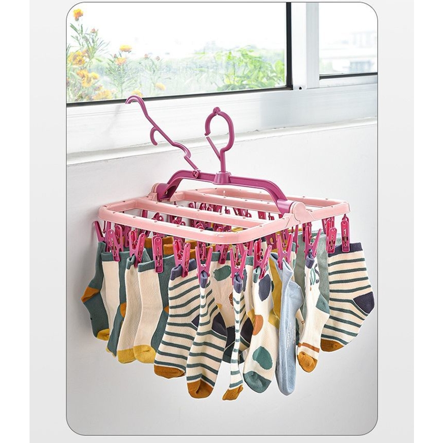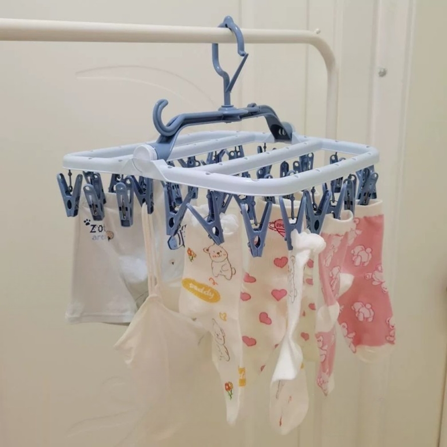 長いフック付きで窓際や手すりにも掛けられ、室内でもベランダでも便利に使えます◎