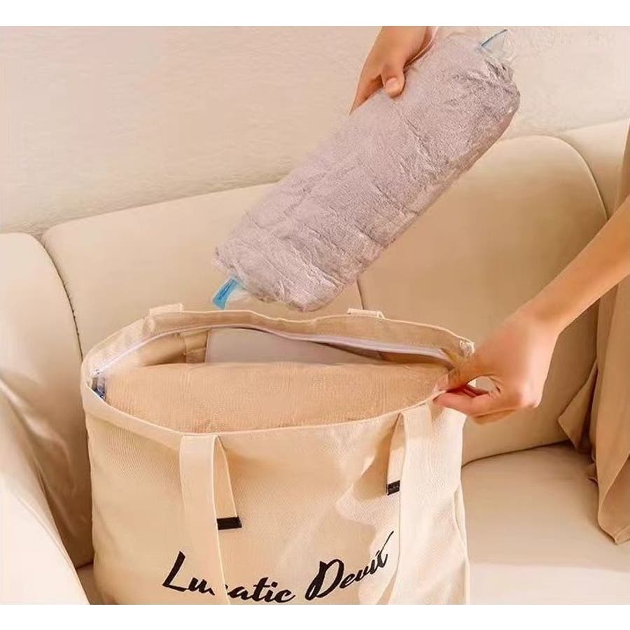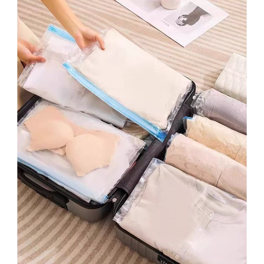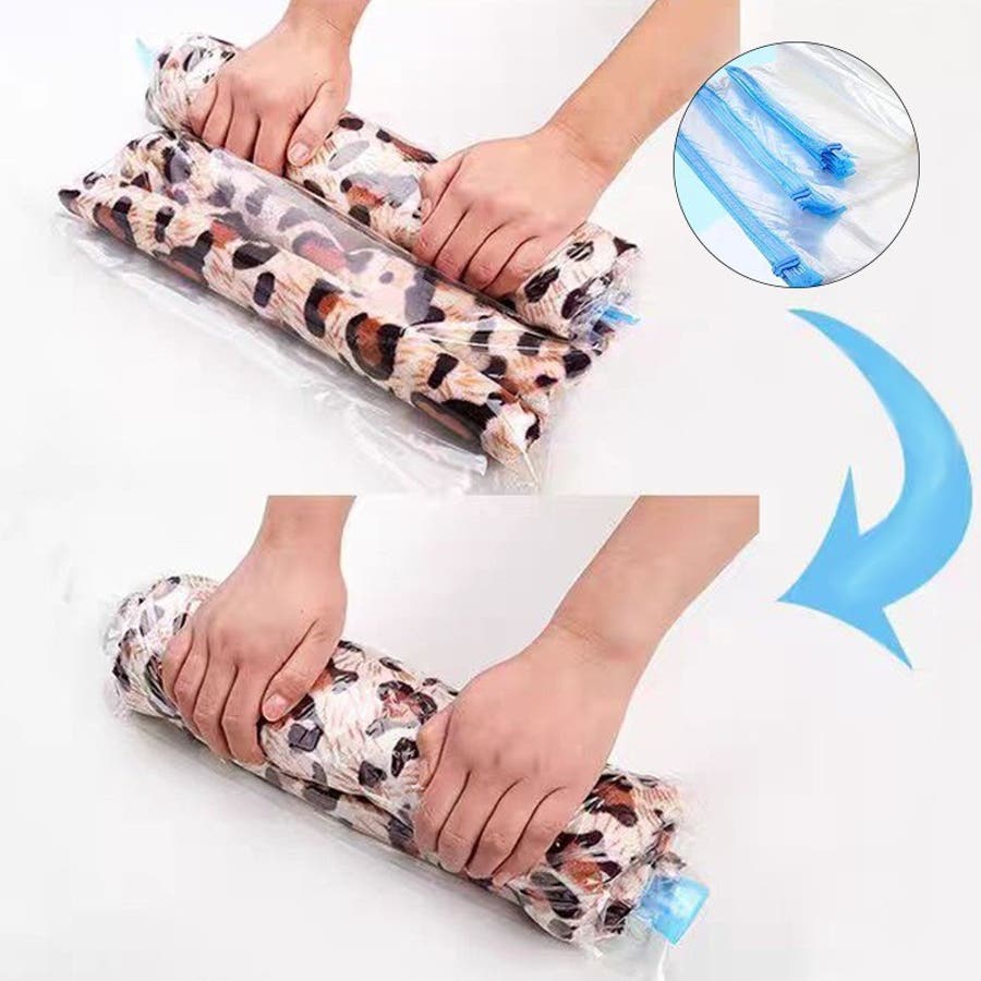 旅行やお出かけ時に手押しで丸めるだけの簡単衣類圧縮!