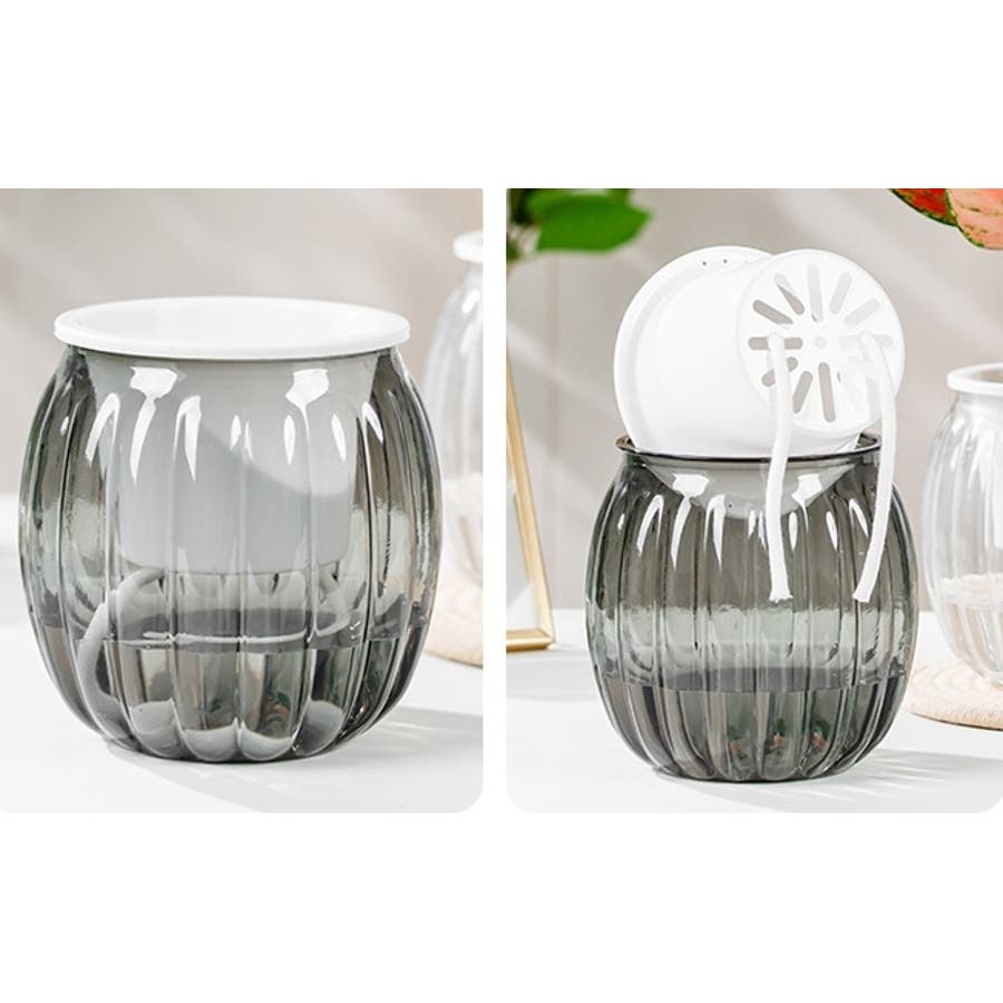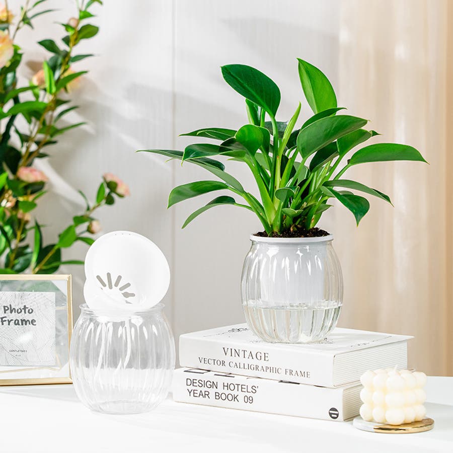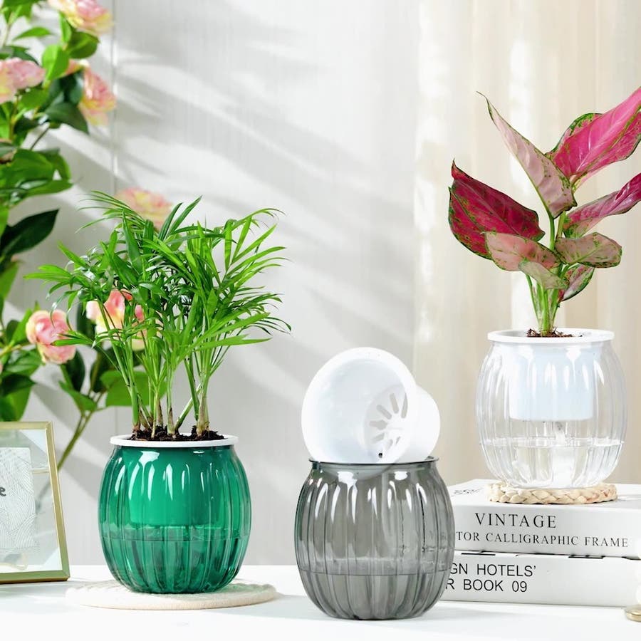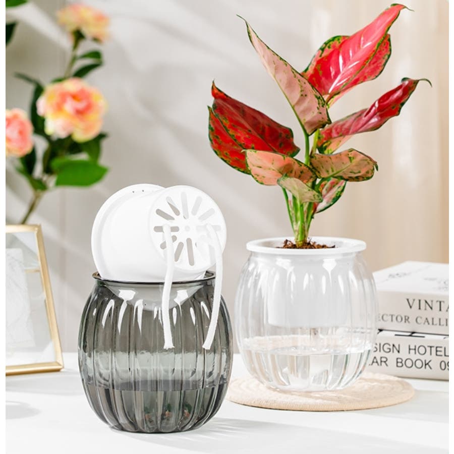 内側の鉢底から伸びたロープが下からの水を自動で給水♪