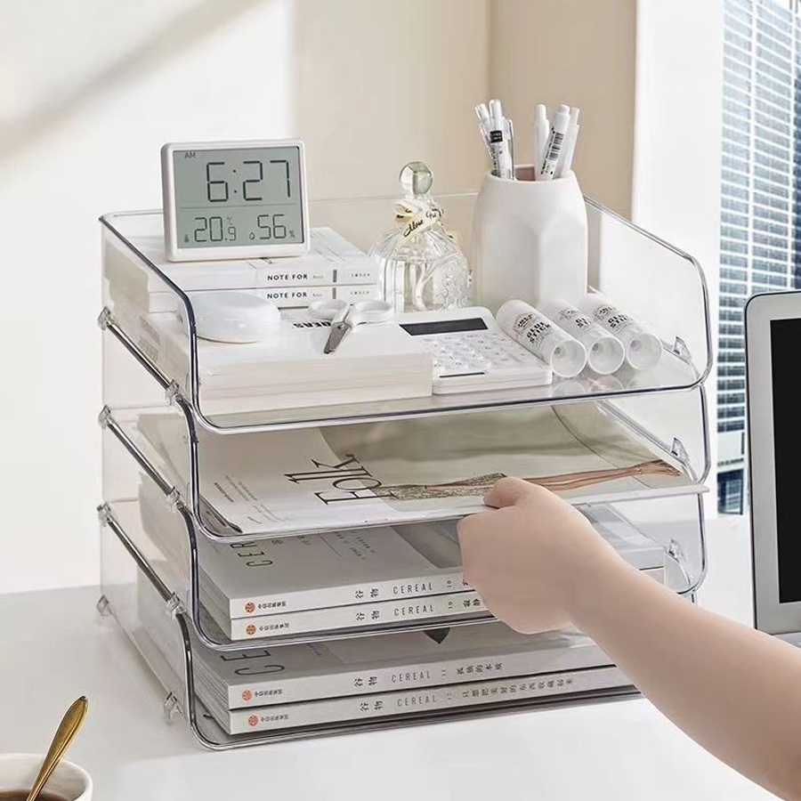 クリアカラーのシンプルなデスクトレー(同色2個セット)です。
