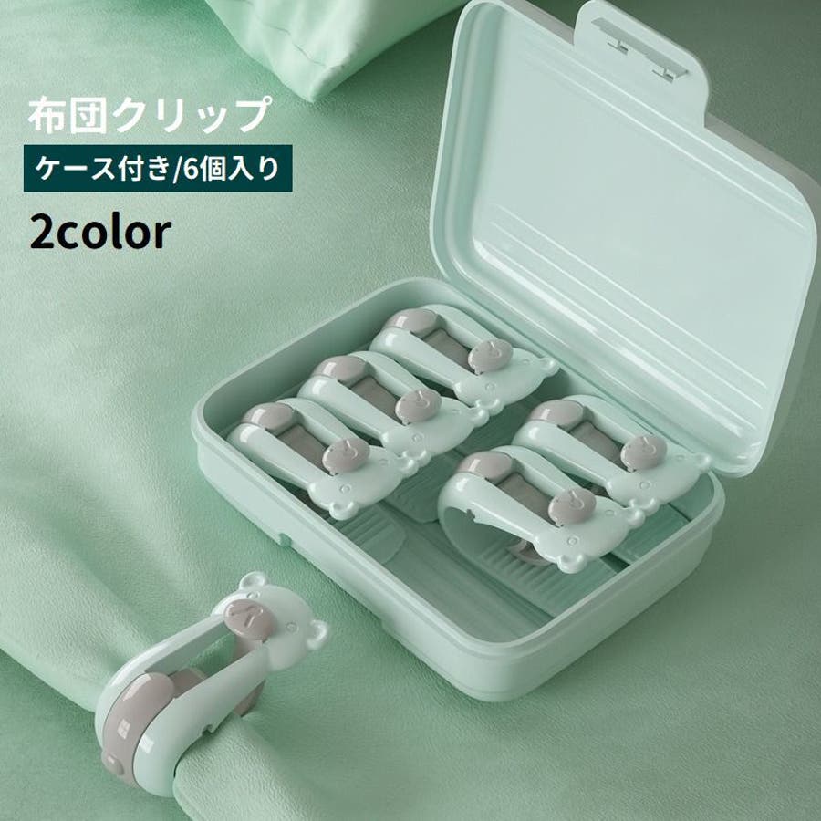クマデザインが可愛いケース付き布団クリップ(同色6個入り)です。