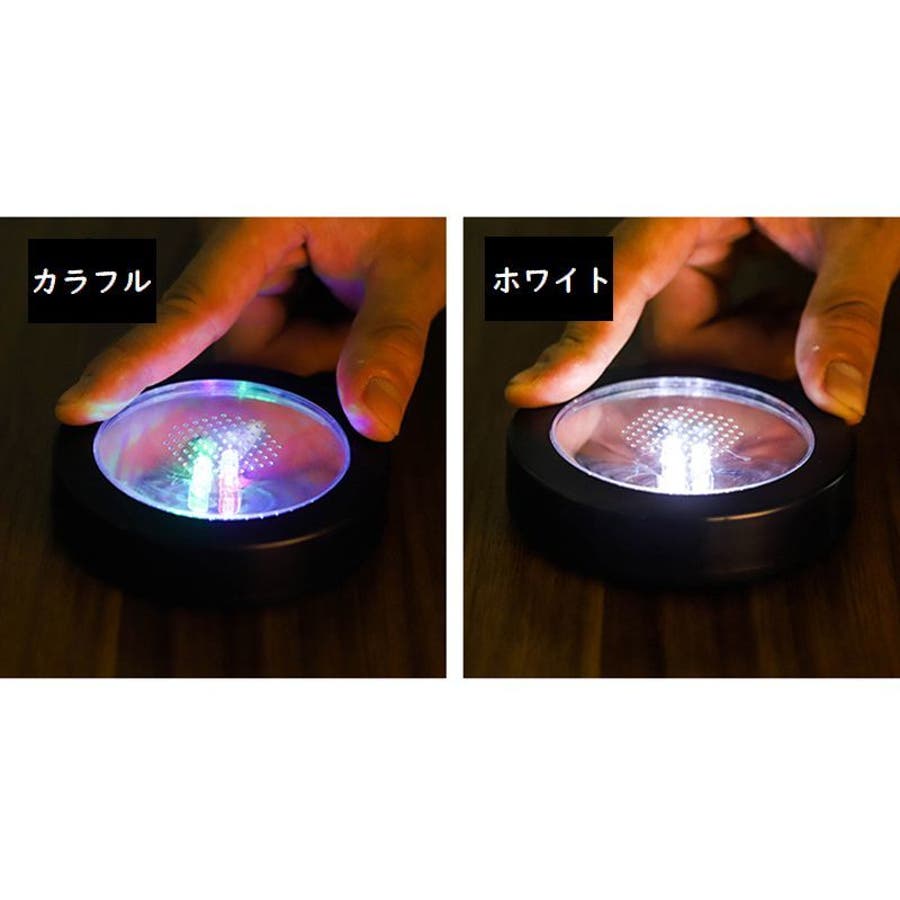 ライトの上にオブジェを置いて光らせることができる電池式LEDライトコースターです。