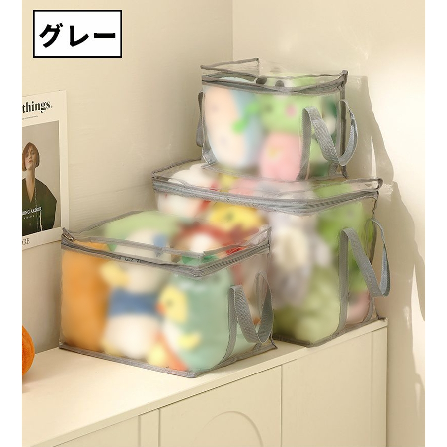 本や衣類、ぬいぐるみなどを収納できるクリアケース(単品)です。