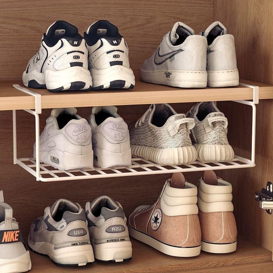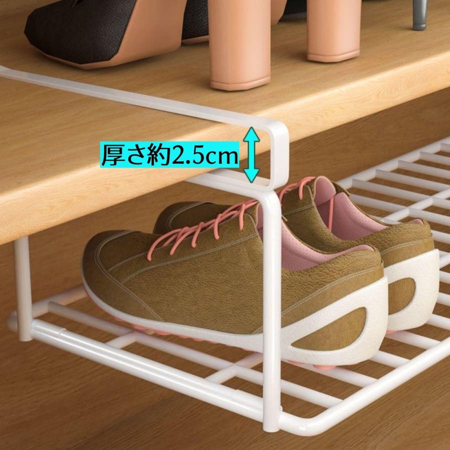 下駄箱の棚下に簡単に取り付けて、収納スペースを有効活用!