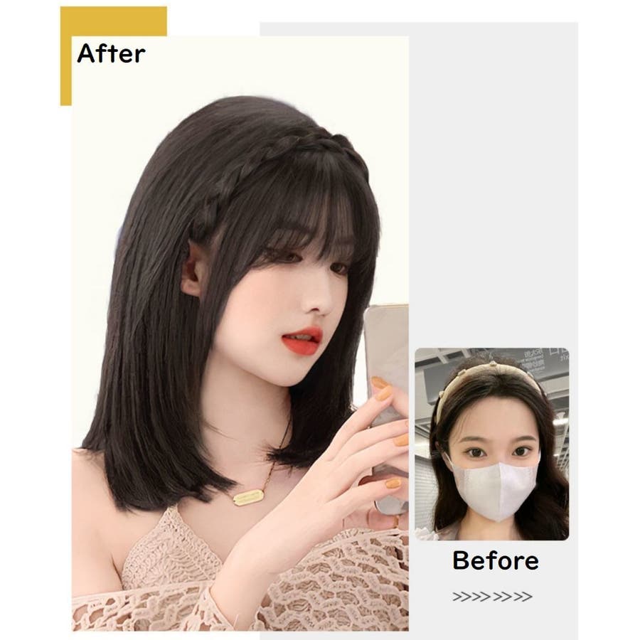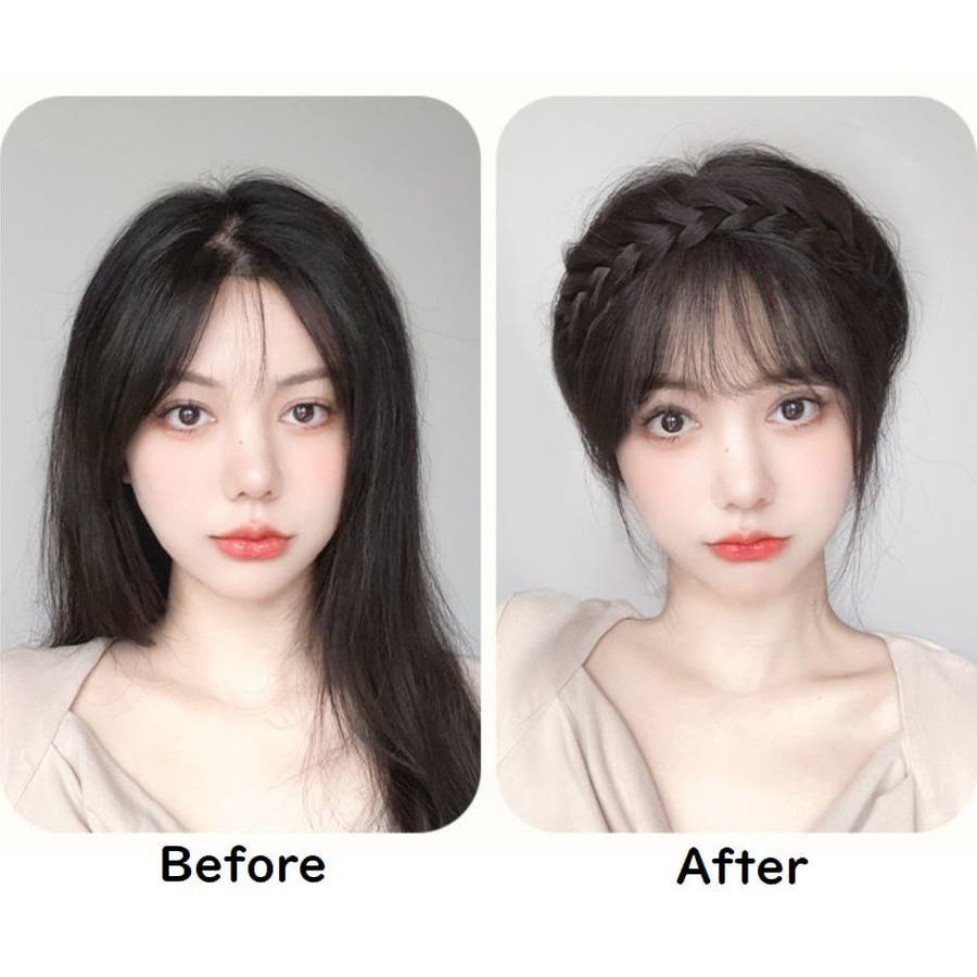ヘアアレンジが楽しめる三つ編みカチューシャ付き前髪ウィッグです。