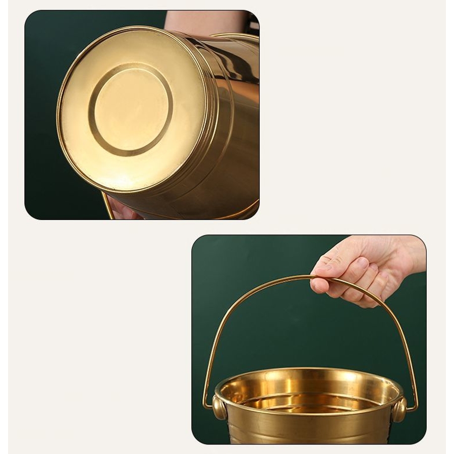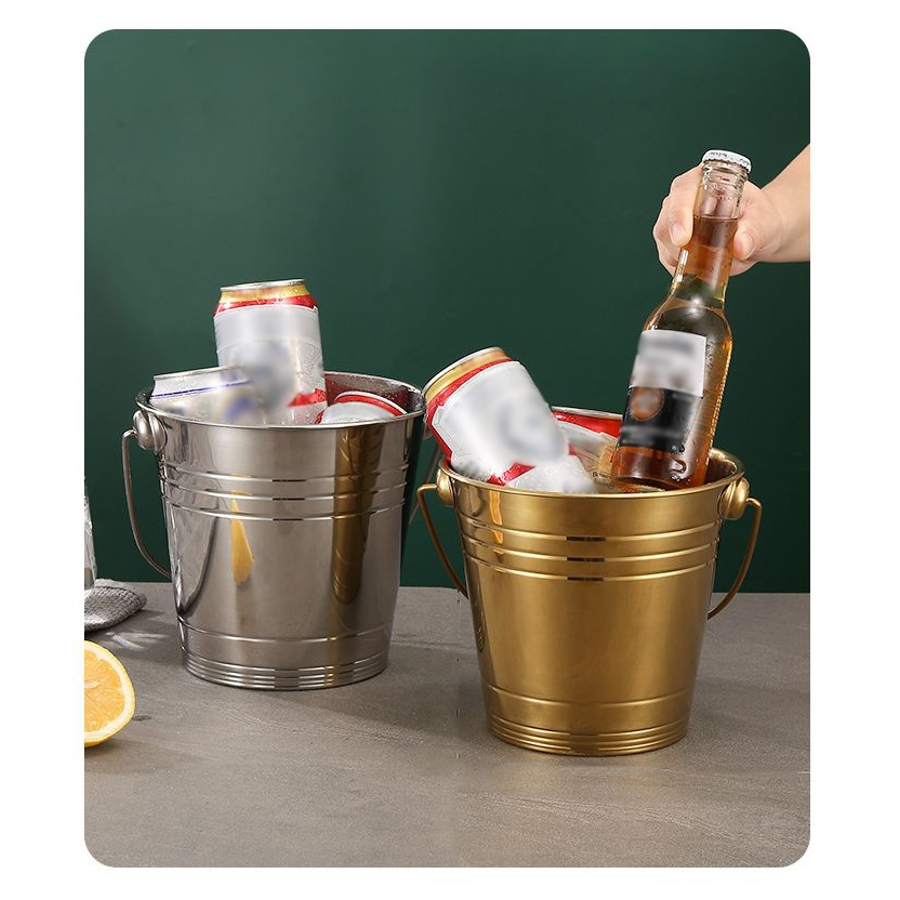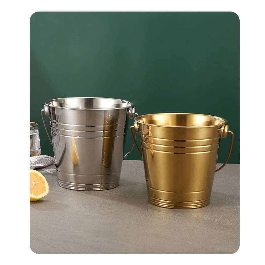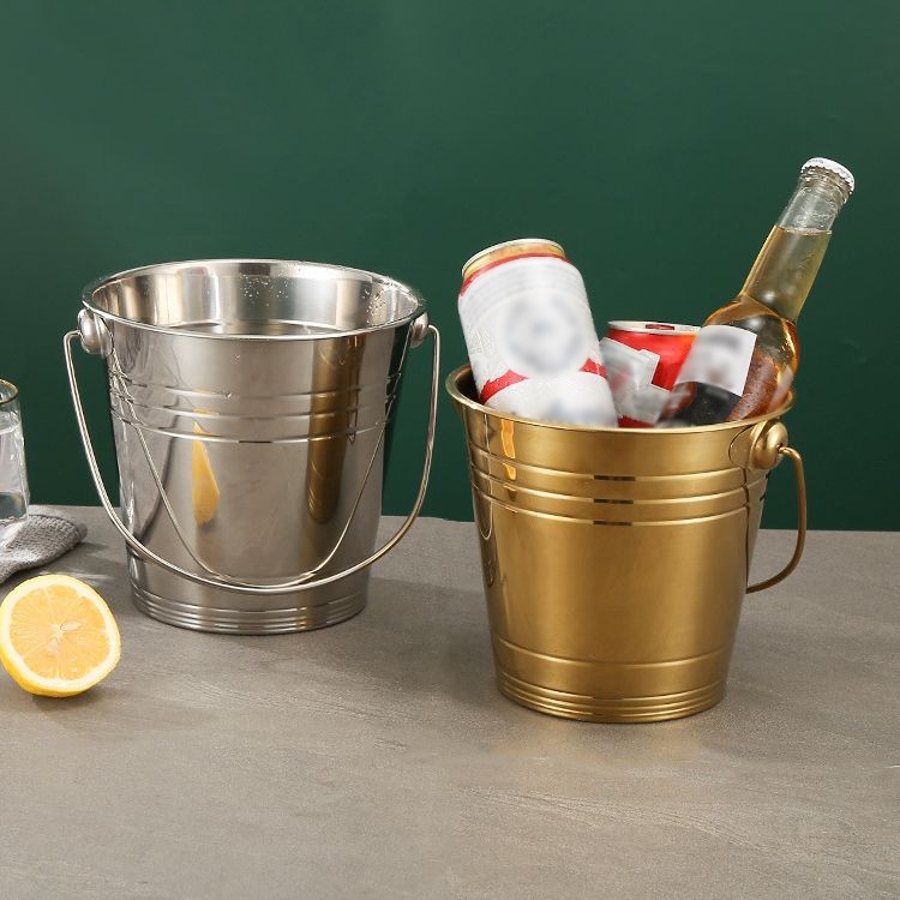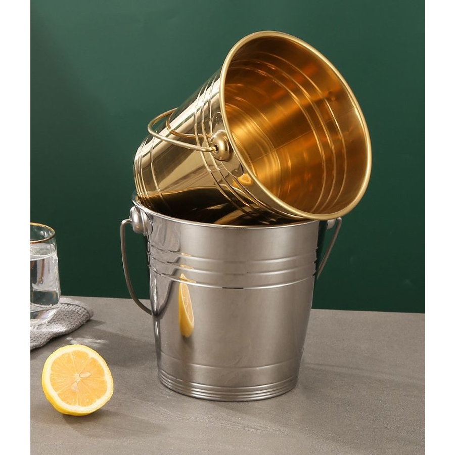 厚手金属製の手提げハンドル付きアイスペールです。