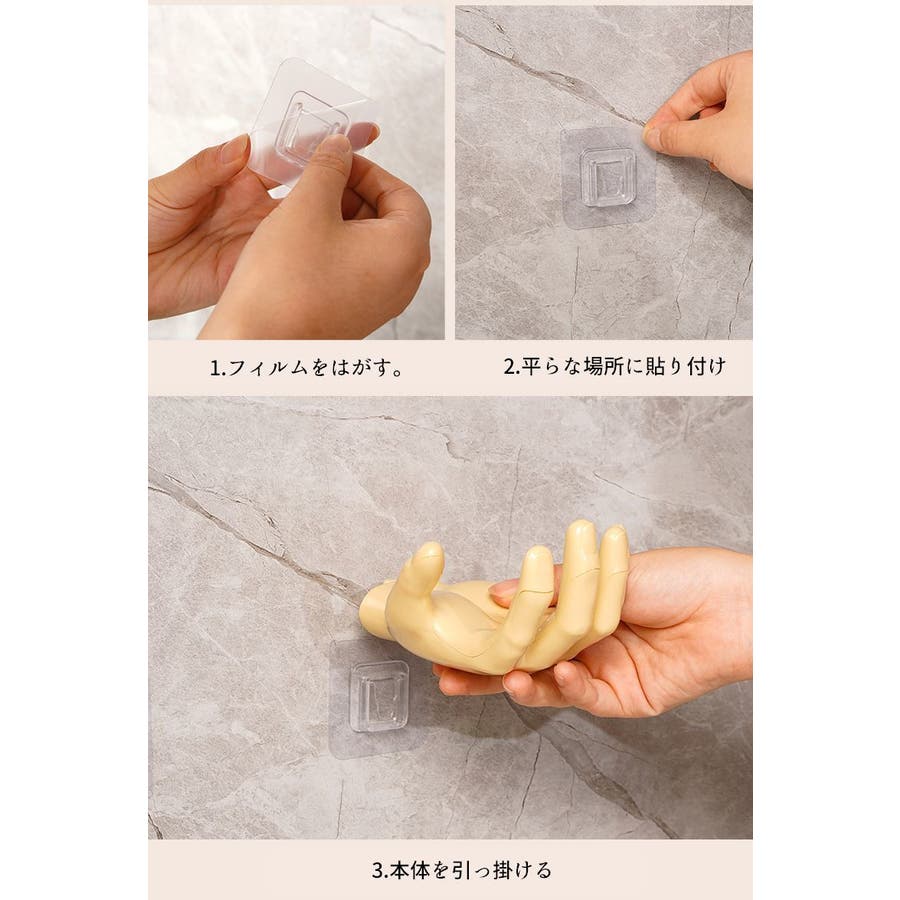 平らな壁にシールを張り付けて引っ掛けるだけの簡単設置◎