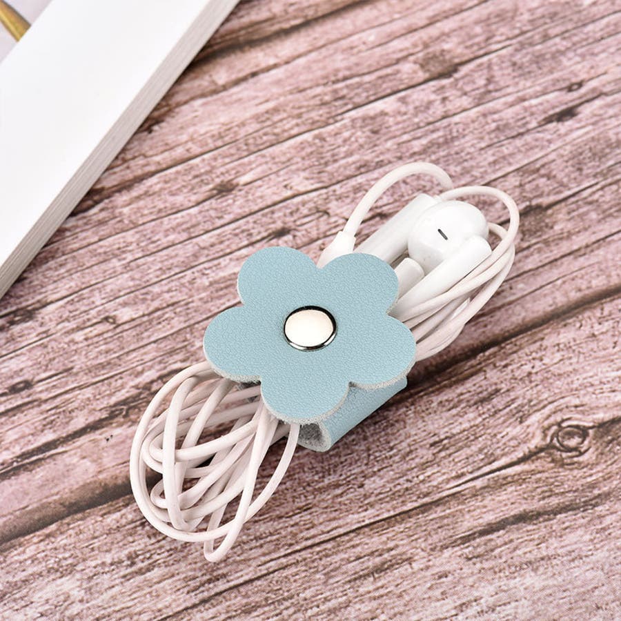 スナップボタン留めのPUレザー製ケーブルホルダー同色2個セットです。