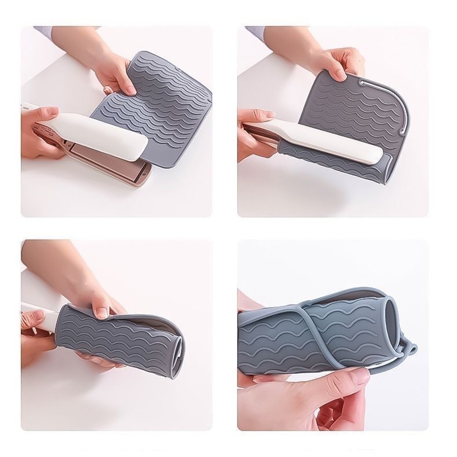 携帯便利で旅行や出張にも!ヘアアイロン用のシリコン製耐熱マットカバーです。