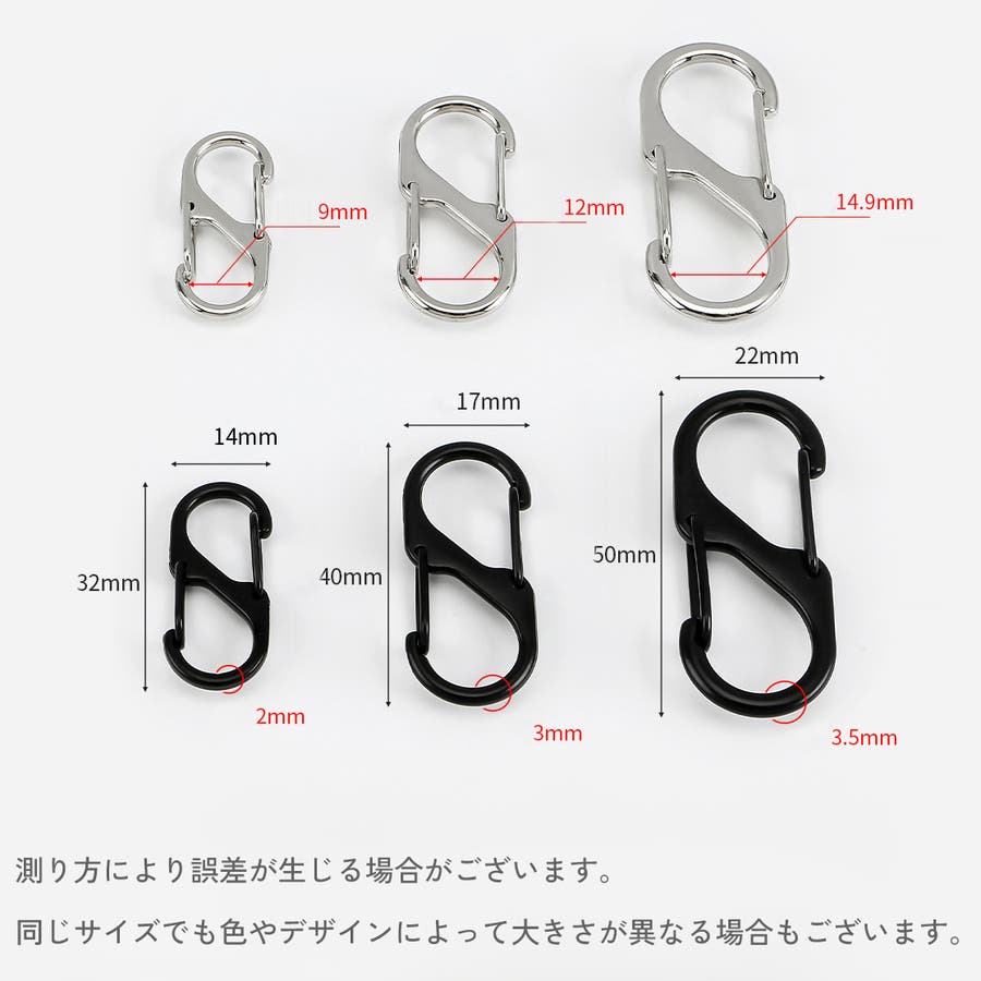 ダブルフックタイプの小さめなカラビナフック、5個セットです。