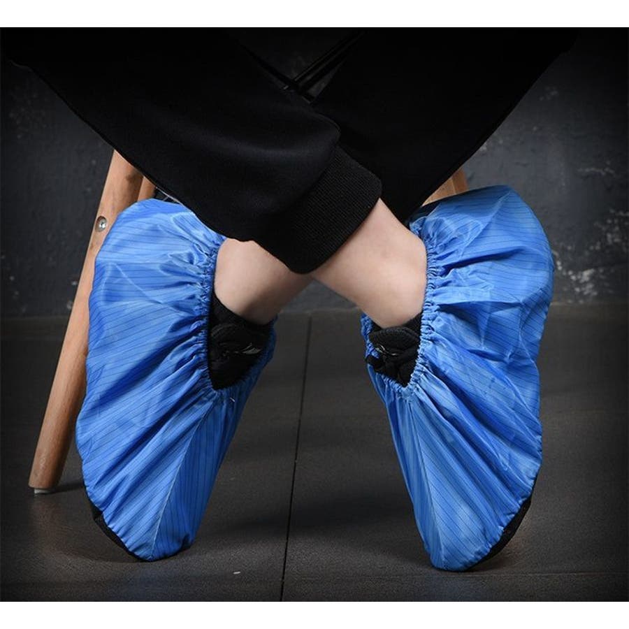 光沢感のあるストライプ柄の室内用シューズカバーです。