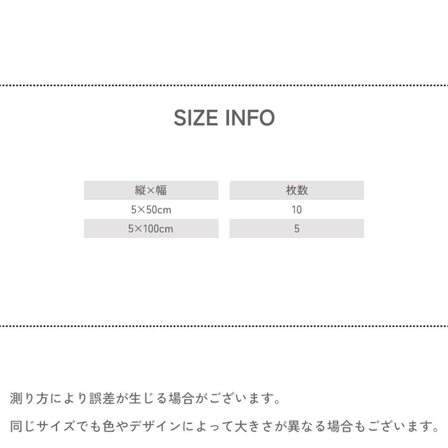 | サイズ | 5×100cm【5枚セット】 / 5×50cm【10枚セット】 |
