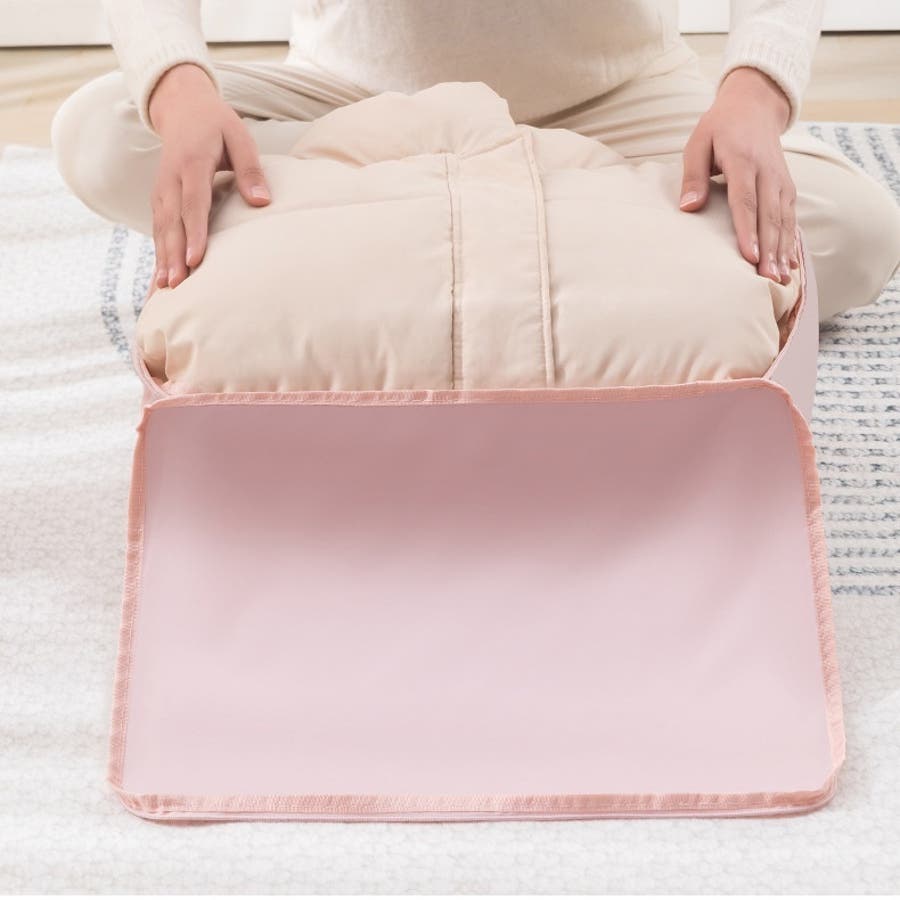 持ち運びに便利な、持ち手付き衣類圧縮袋です。