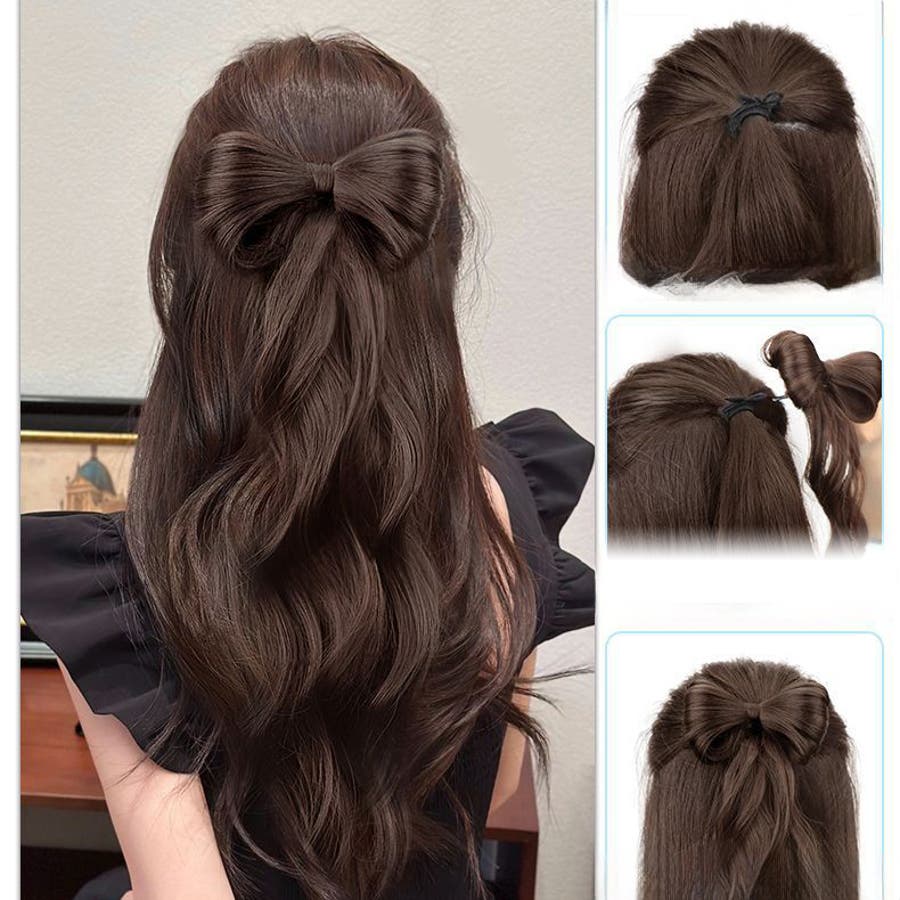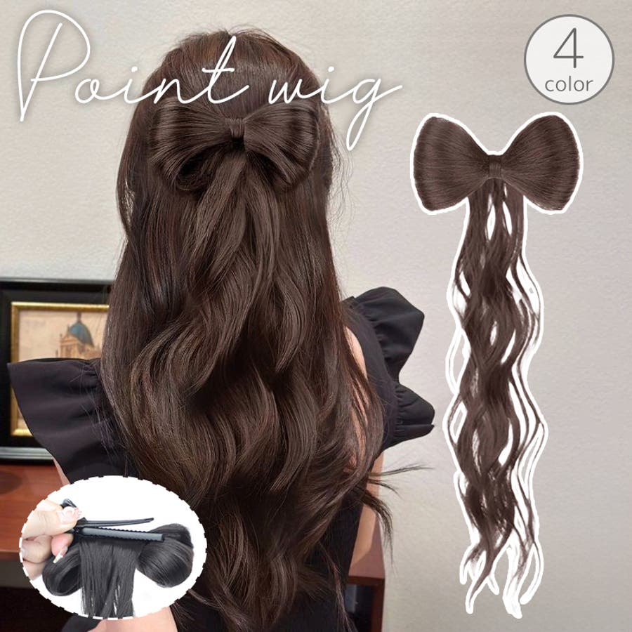 可愛いリボン付きのポニーテールのポイントウィッグ。