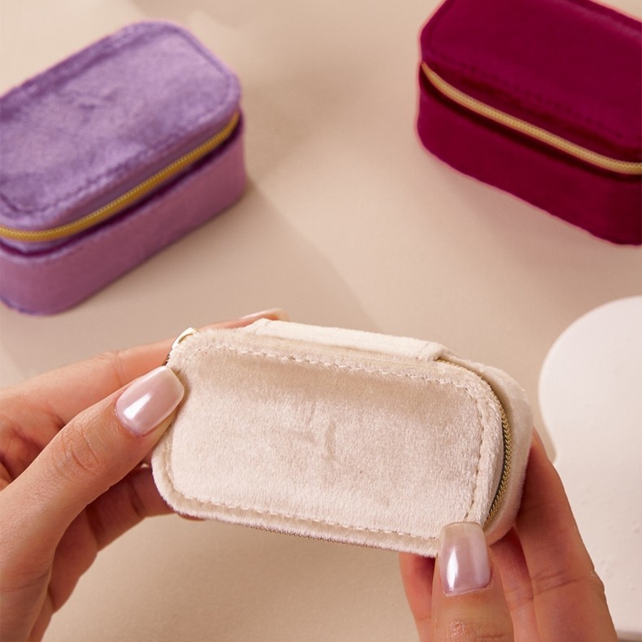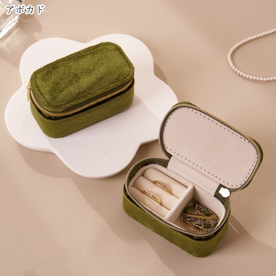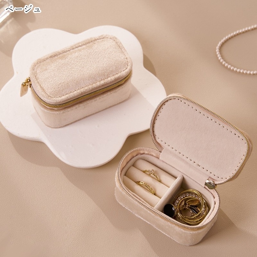 柔らかな内張りがアクセサリーを傷から守り、手のひらサイズで持ち運びにも便利。