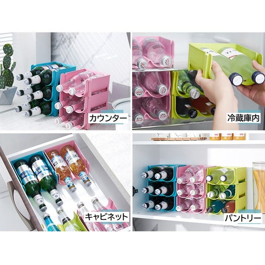 積み重ねOK、瓶・缶・ペットボトルの収納に◎