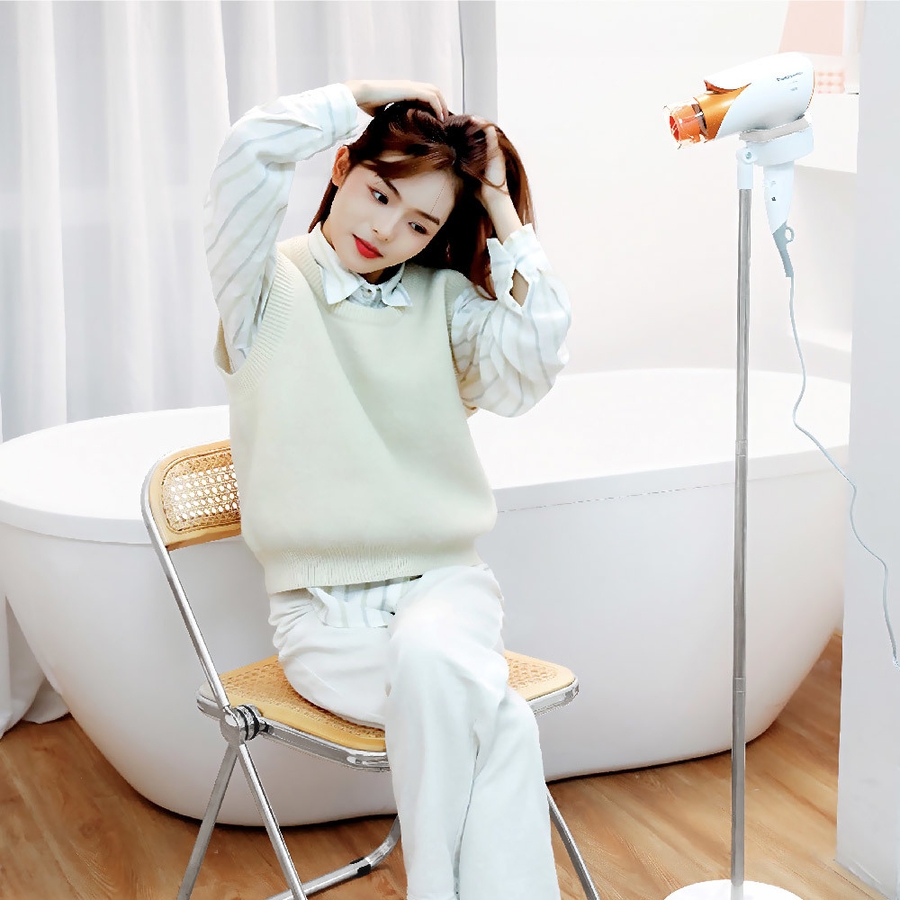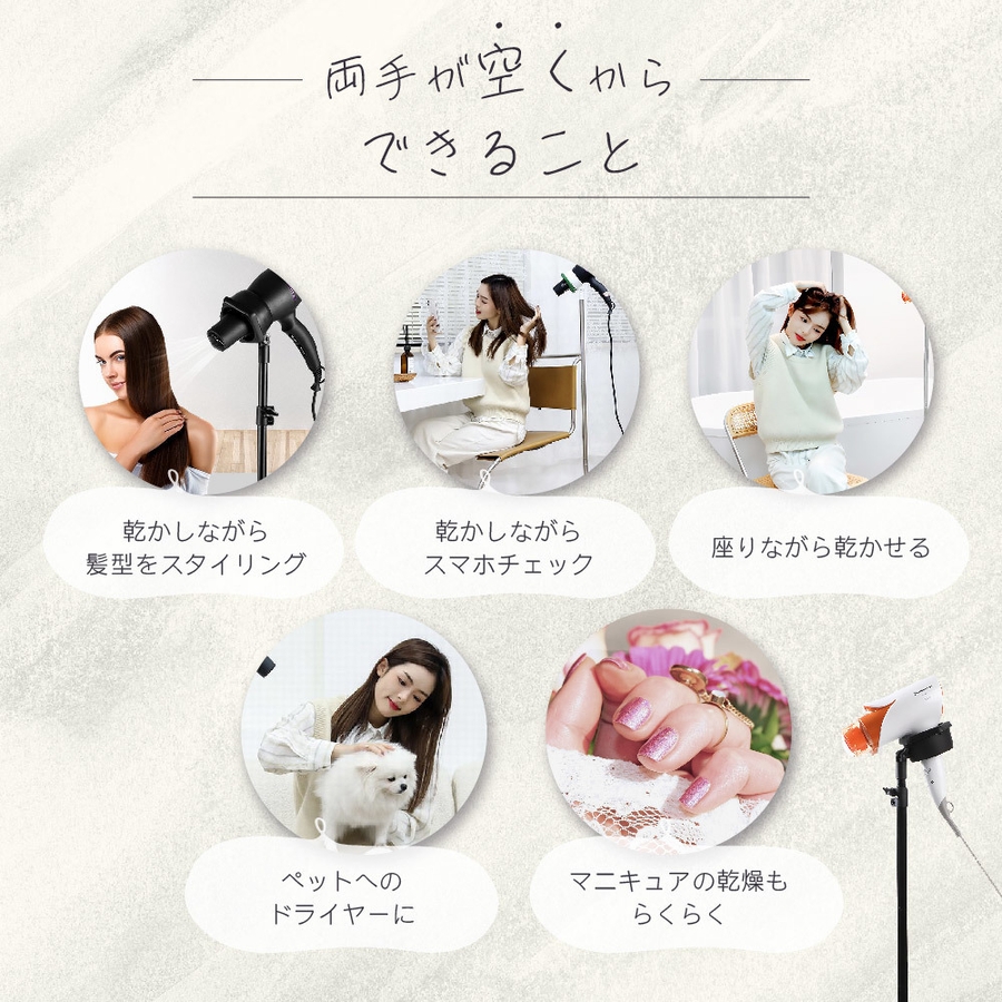 両手が空くので、ブラッシングしながら毛を乾かせます。