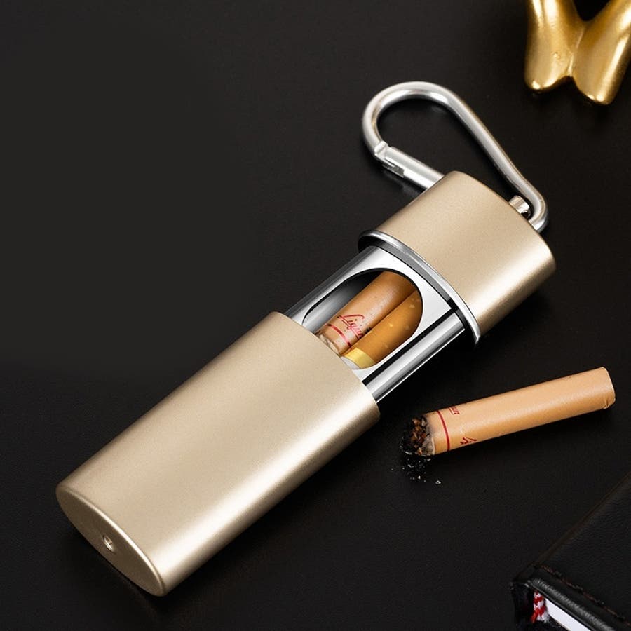 持ち運びに便利なカラビナ付きの携帯灰皿です。