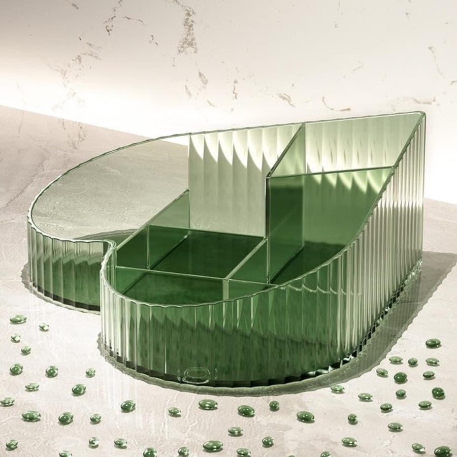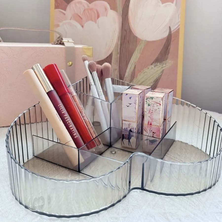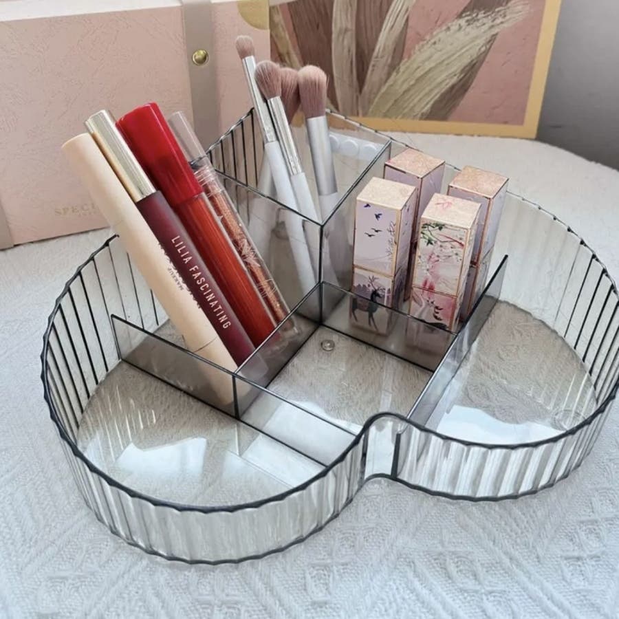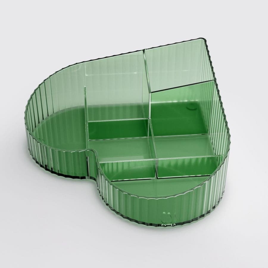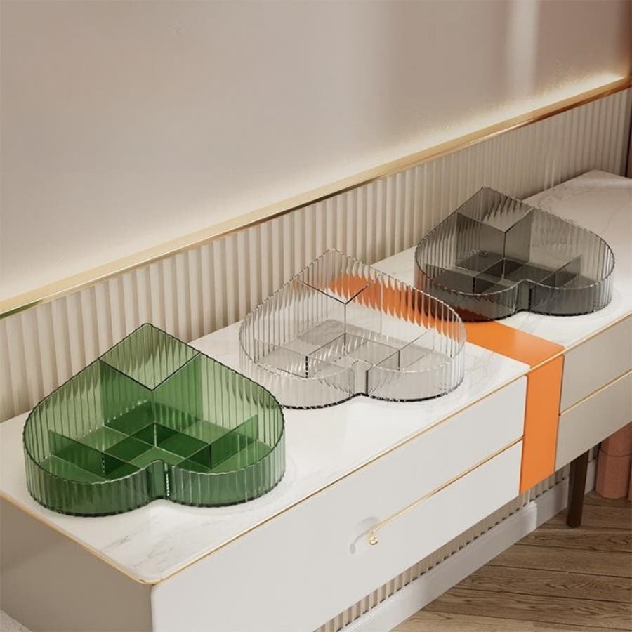 ハート型デザインとクリア素材がおしゃれな、メイクボックスです。