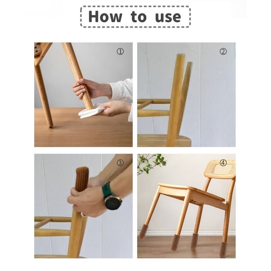 被せるだけ取り付け簡単な椅子脚カバー4個セットです。