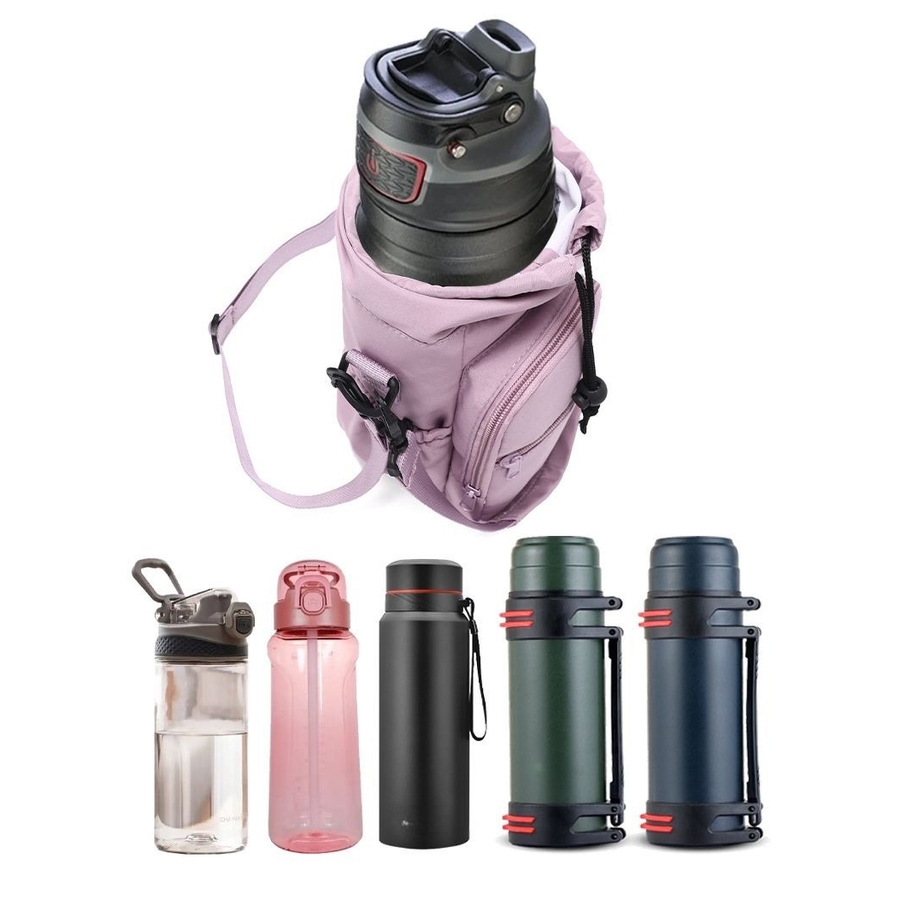 便利なポケット付きの水筒ホルダーです。