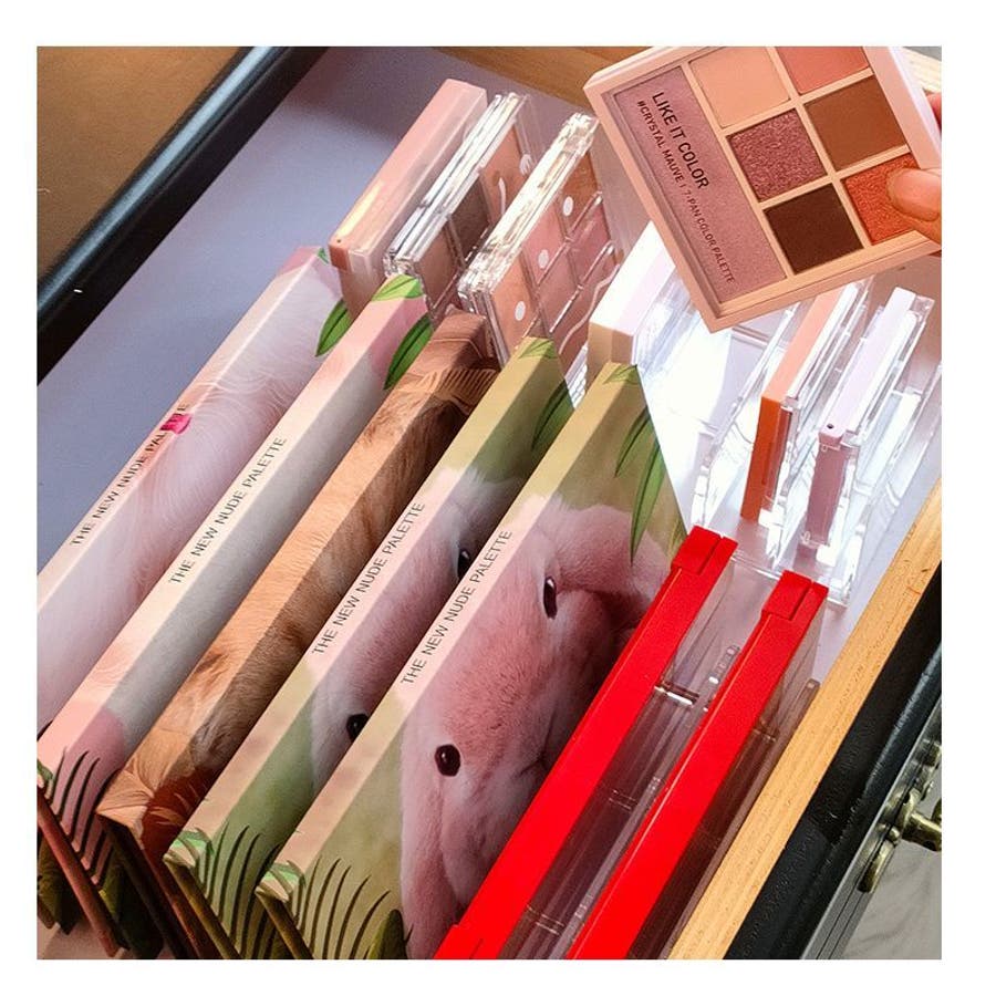 チークのパレット、ファンデやメイク小物などを立てて収納☆