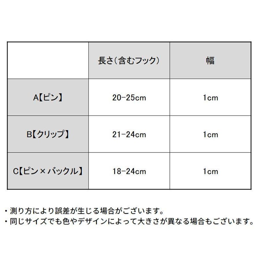 | タイプ | A【ピン】2本セット / B【クリップ】2本セット / C【バックル】2本セット |