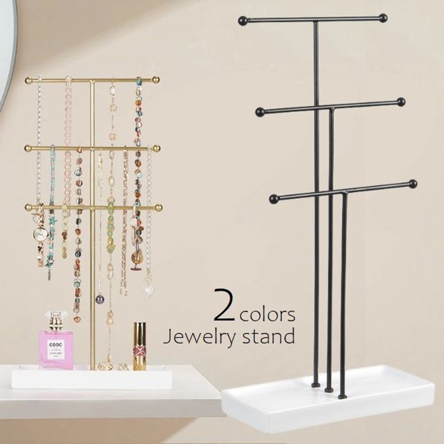 インテリアにも馴染むシンプルデザインのジュエリースタンド。