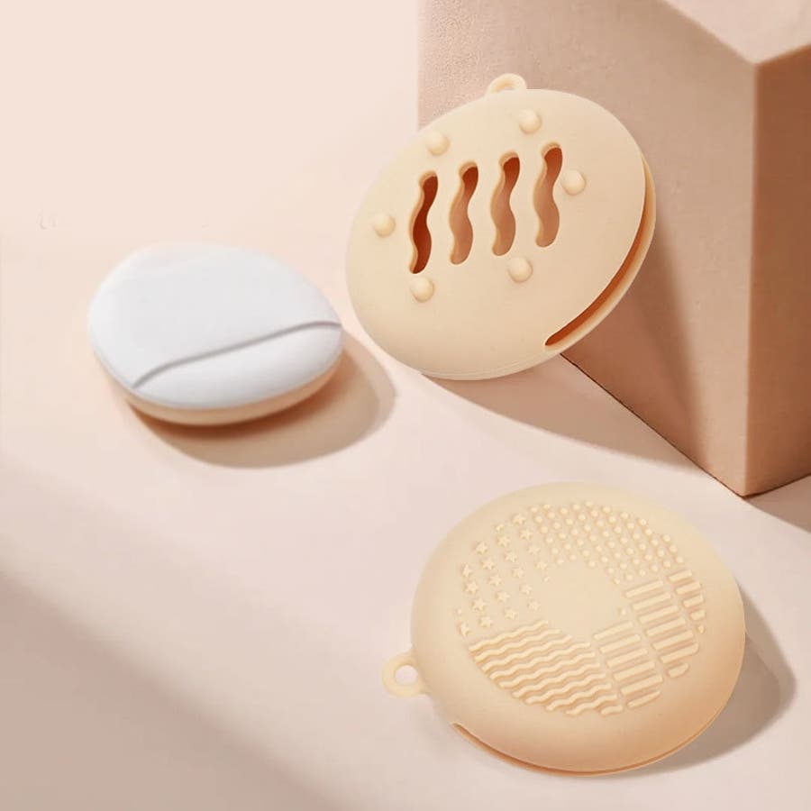 ラウンド型のシリコン製メイクスポンジケースです。