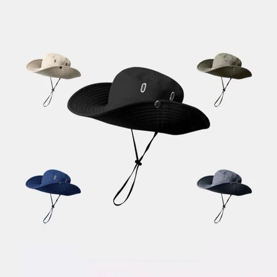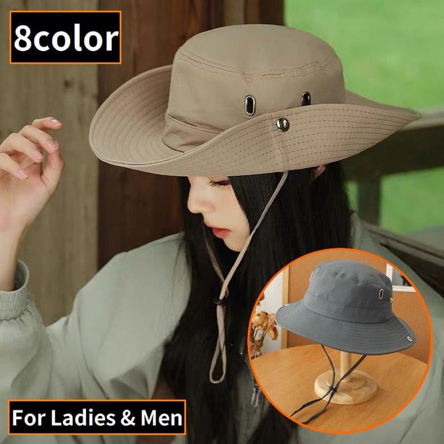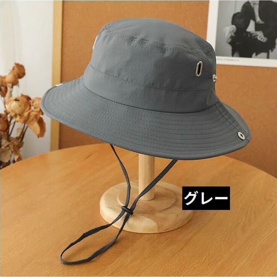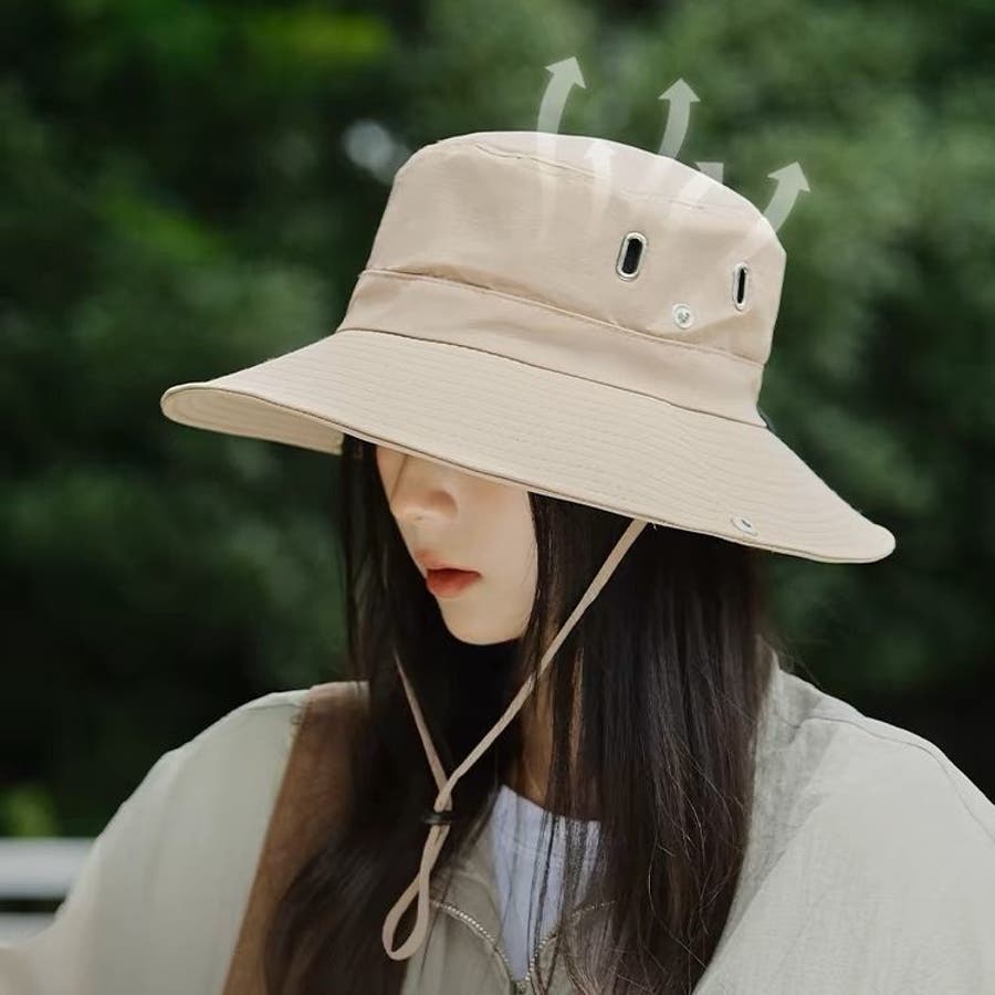 落下防止用あご紐付きのレディース/メンズ兼用バケットハットです。