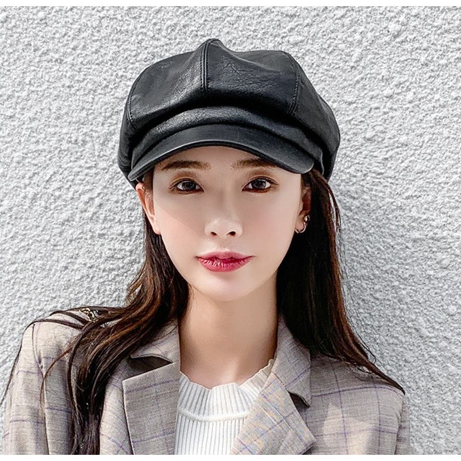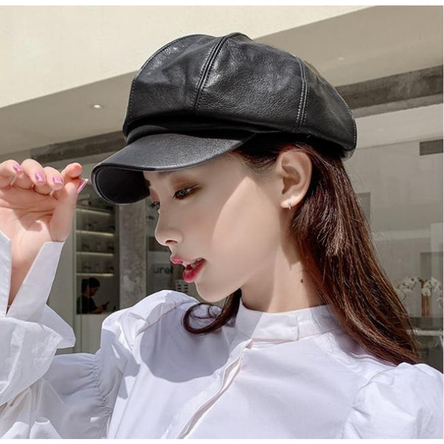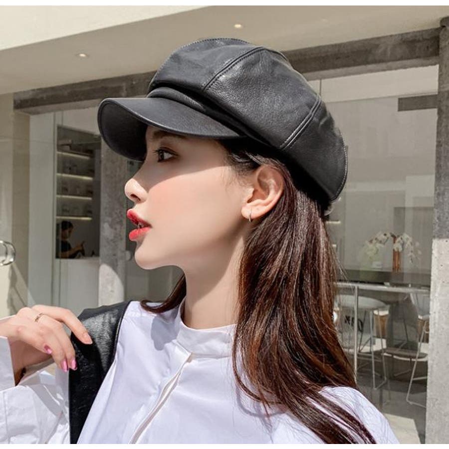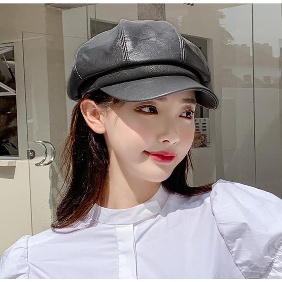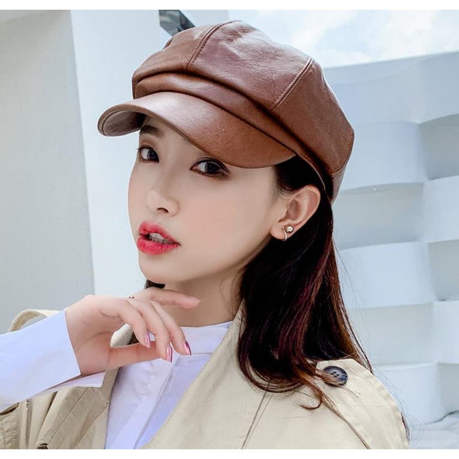 レザー調の光沢感がカッコいいレディース用キャスケットです。