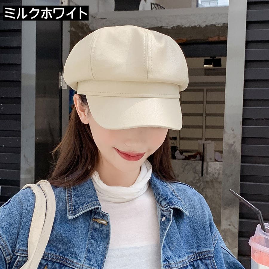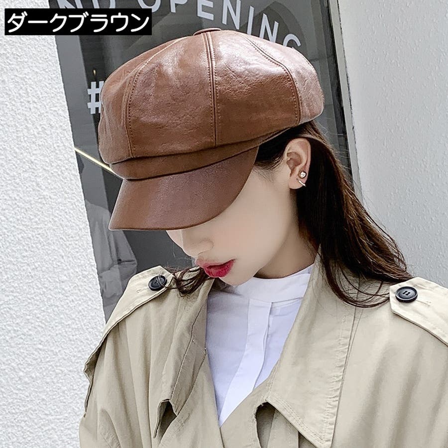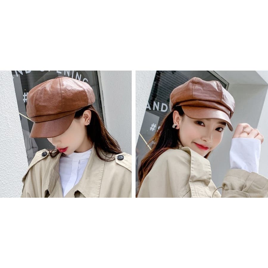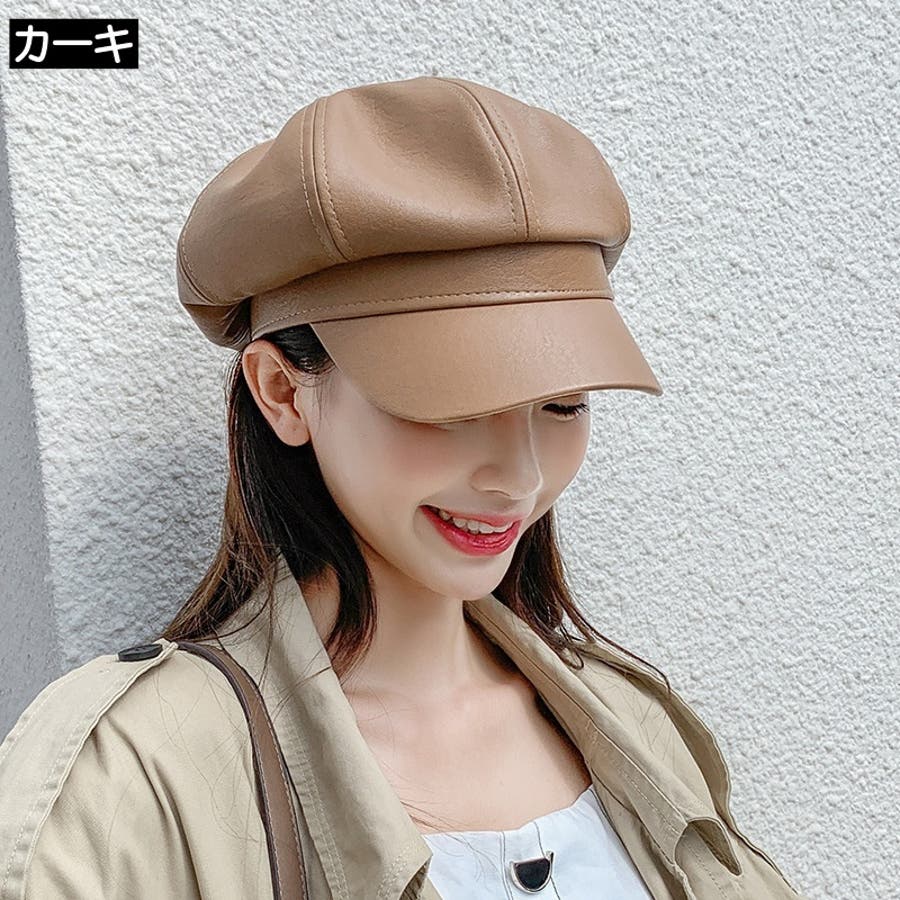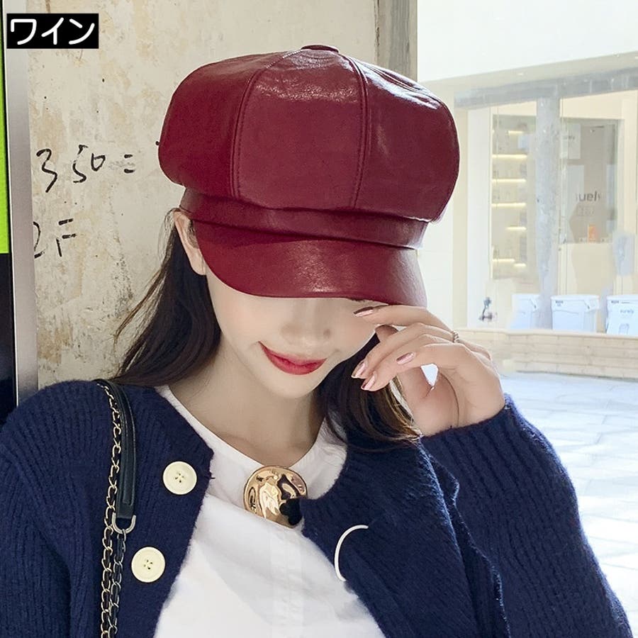 レザー調の光沢感がカッコいいレディース用キャスケットです。