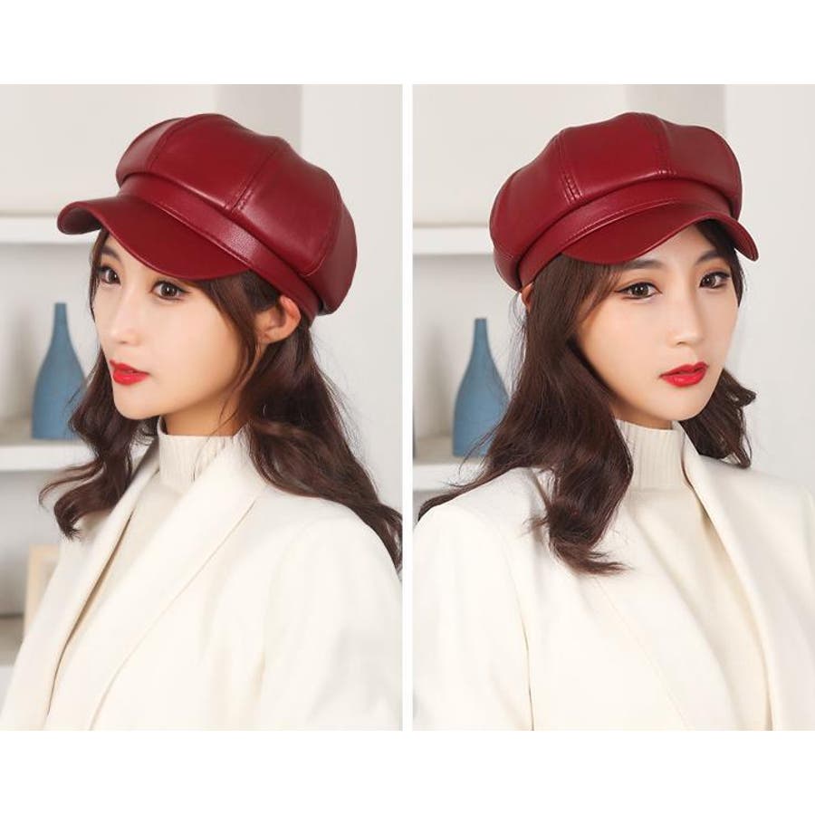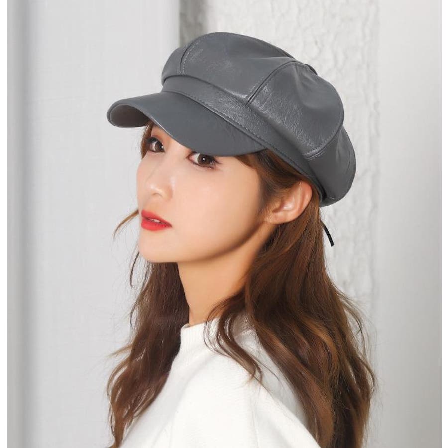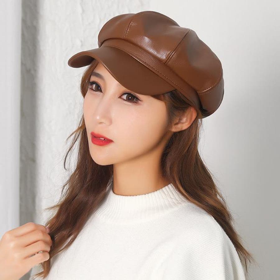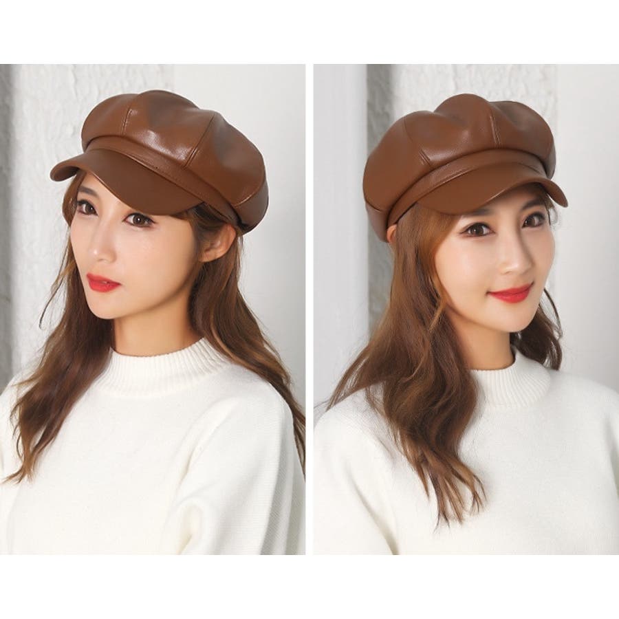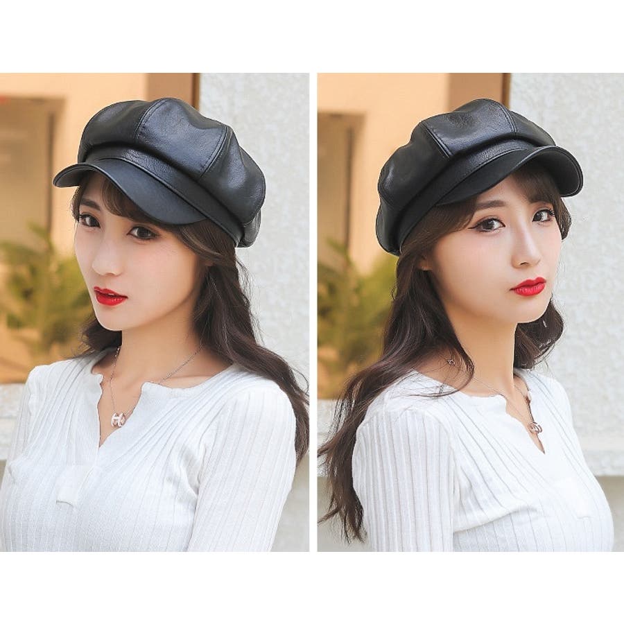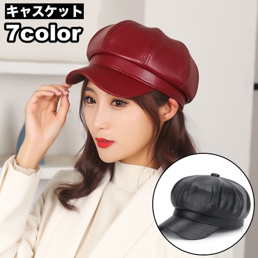 レザー調の光沢感がカッコいいレディース用キャスケットです。