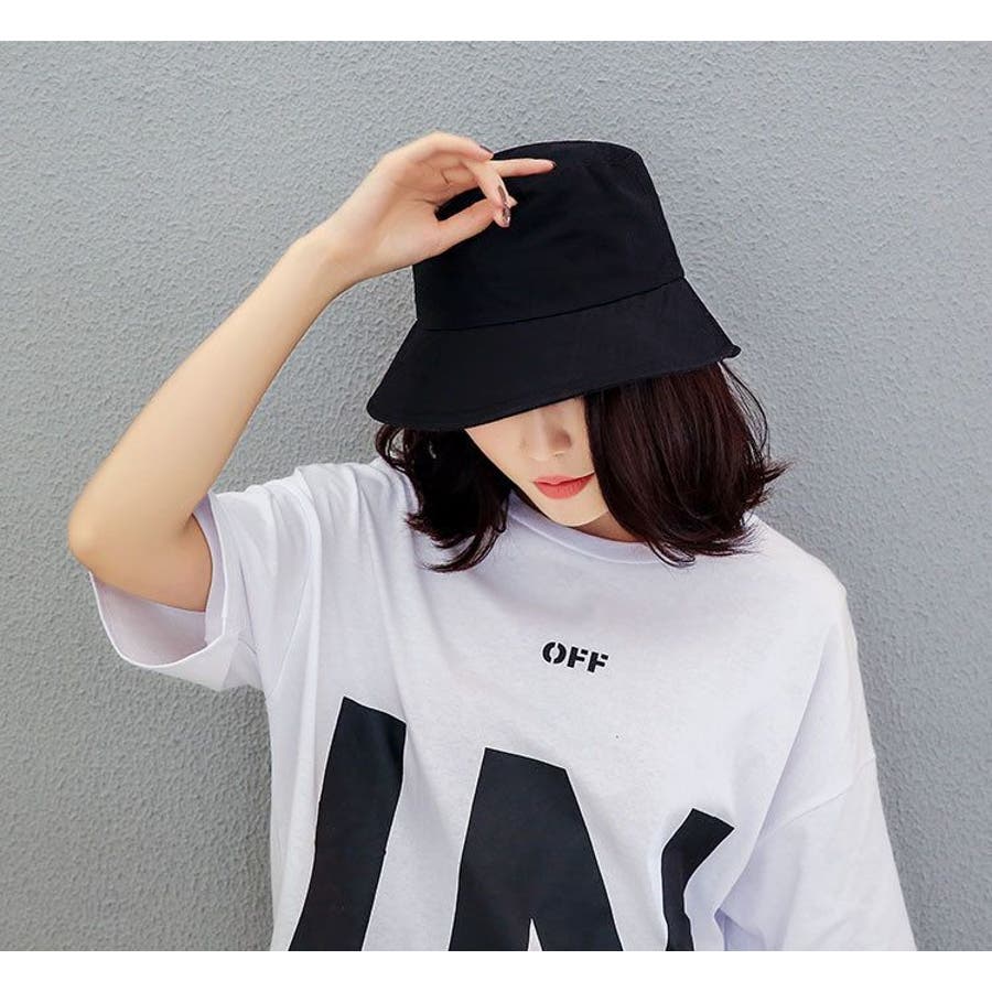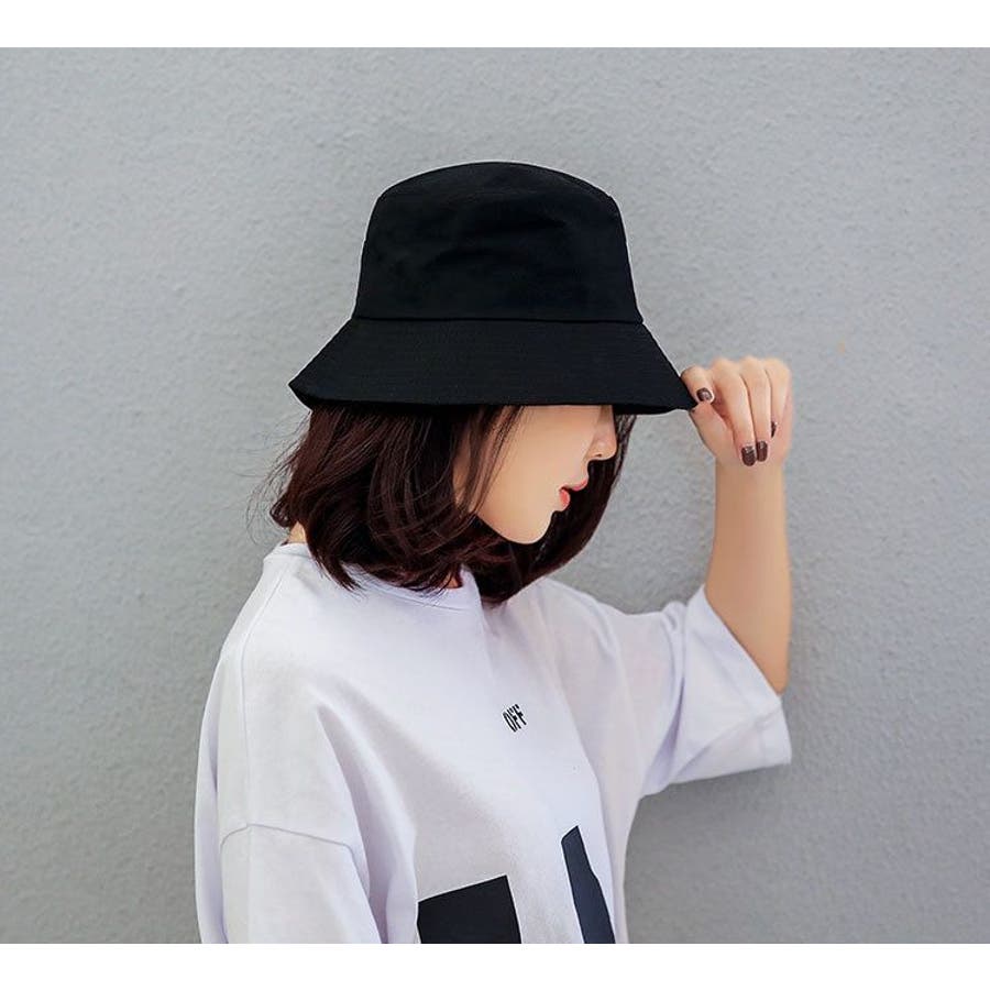 シンプルな無地でファッションに合わせやすい、バケットハットです。