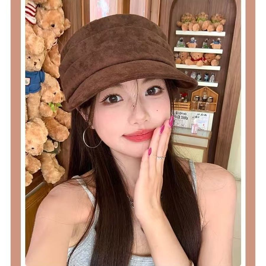 少し長めの前つばが顔まわりに影を作り、小顔効果も期待できます♪