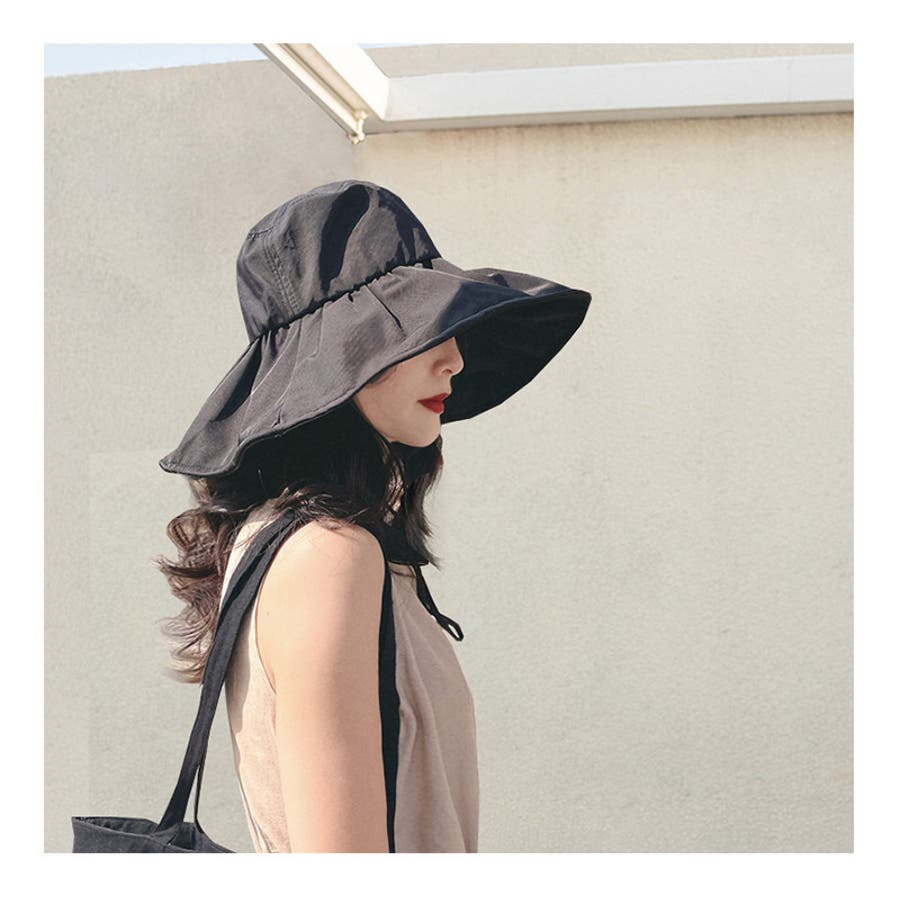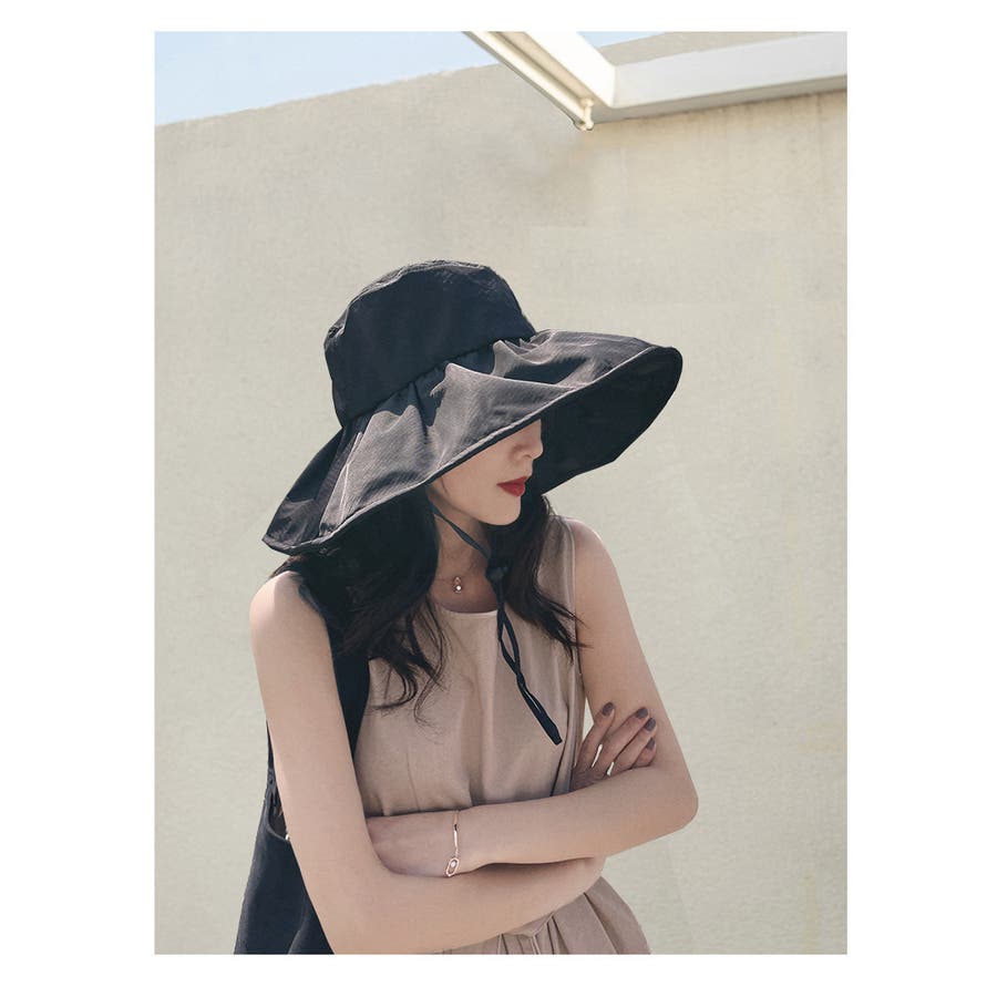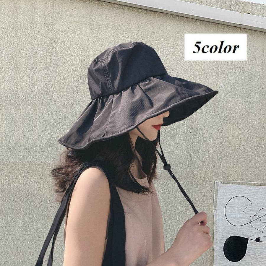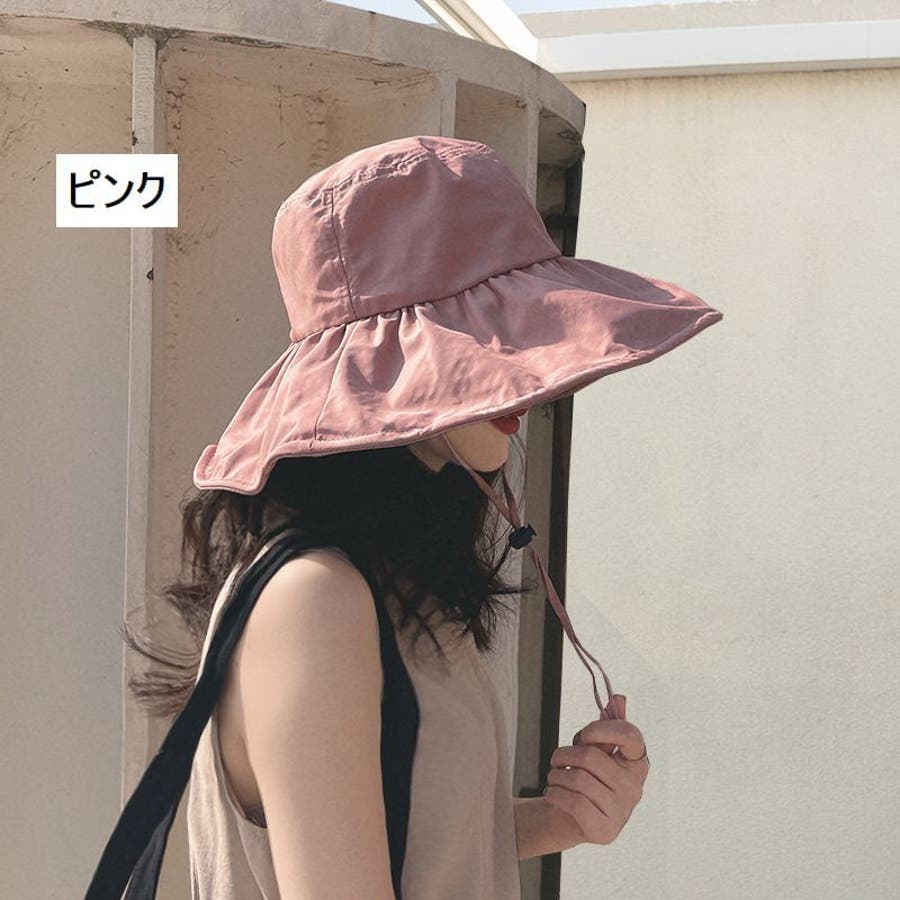 しっかりと日焼け対策やUV対策が出来るつば広デザインで、あご紐付きなのも嬉しい♪