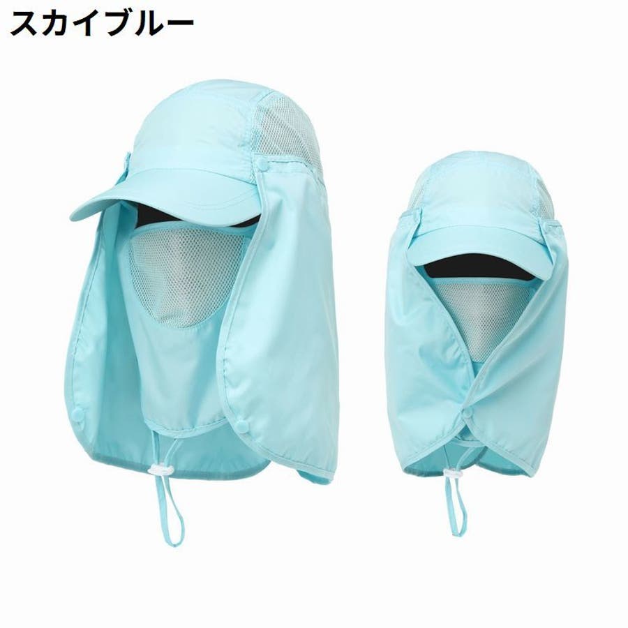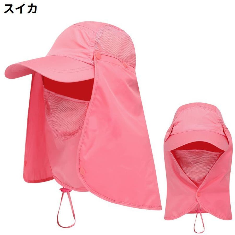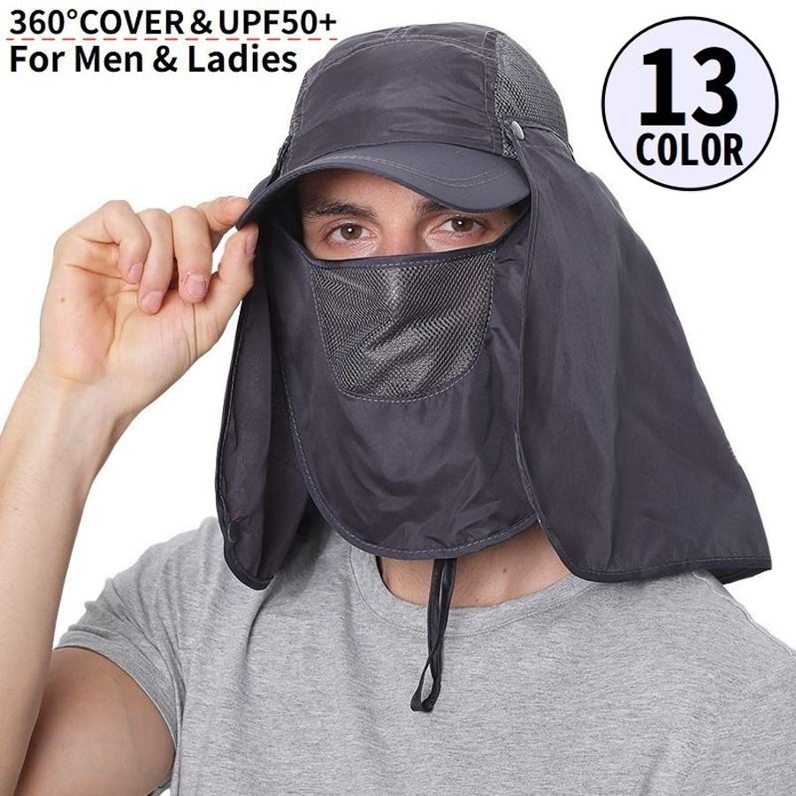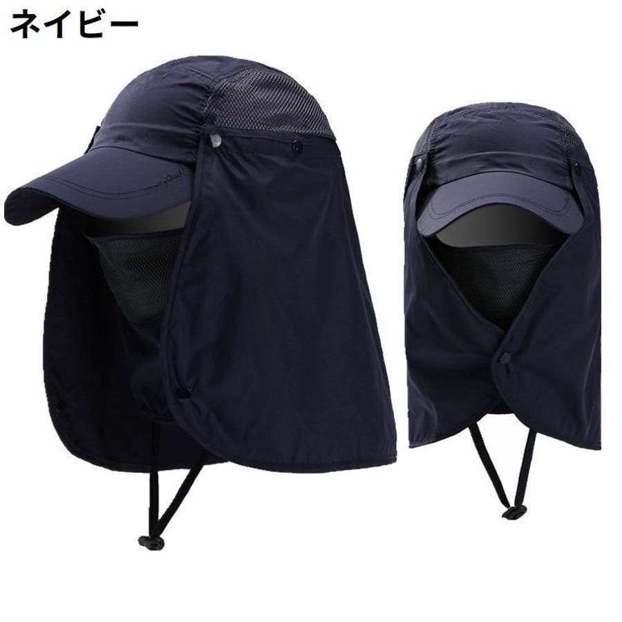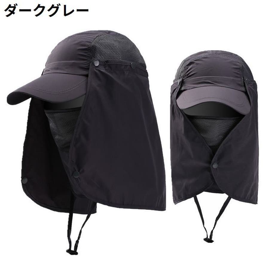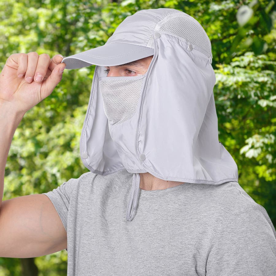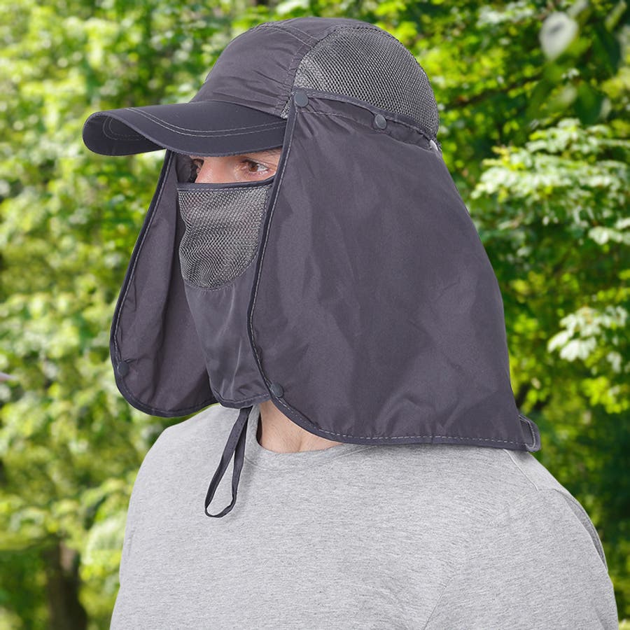 取り外し可能なネック&フェイスカバー付きの男女兼用日除けキャップです。