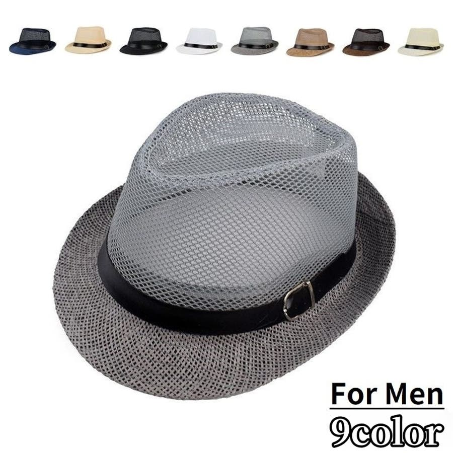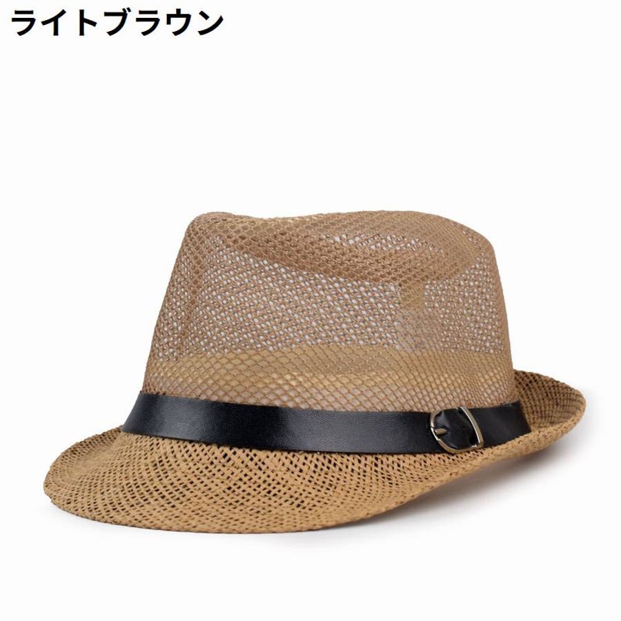ベルト付きのメンズ用中折れストローハットです。