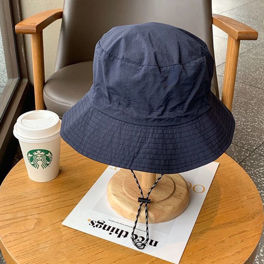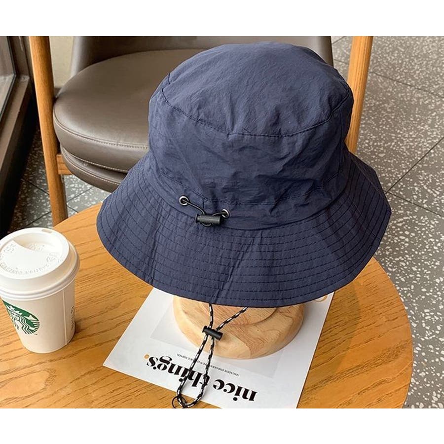 アジャスター&あご紐付きの男女兼用バケットハットです。