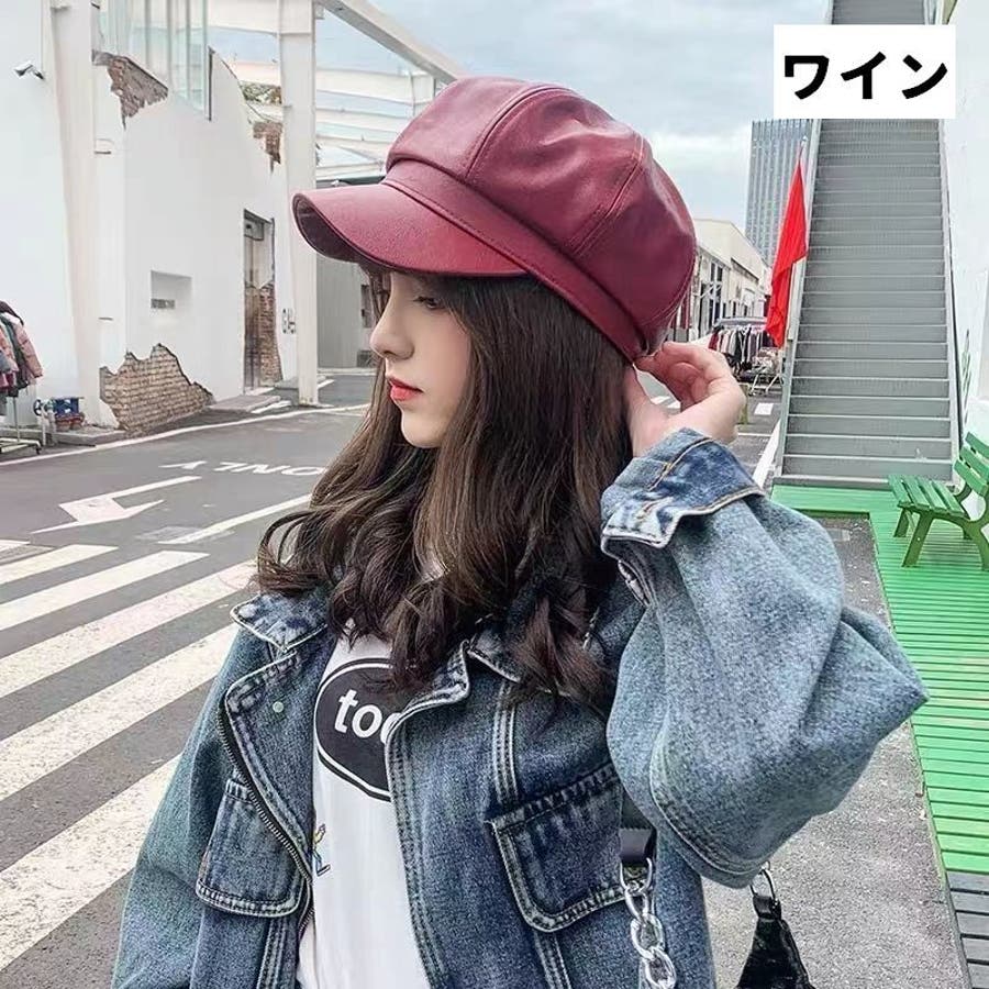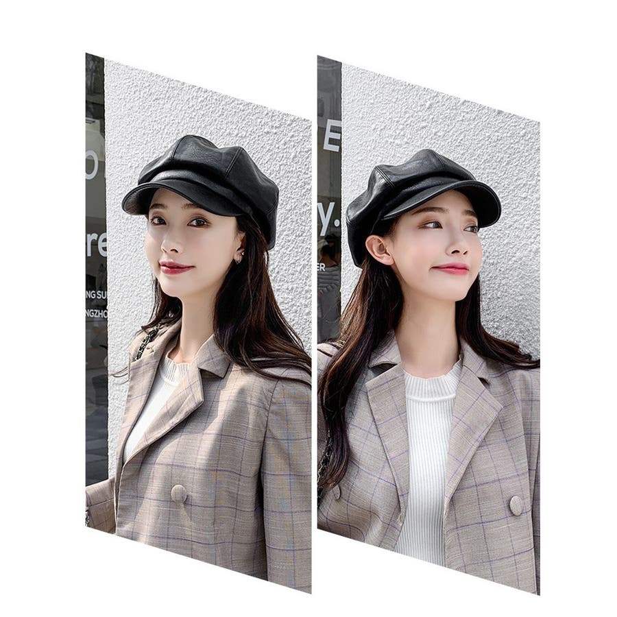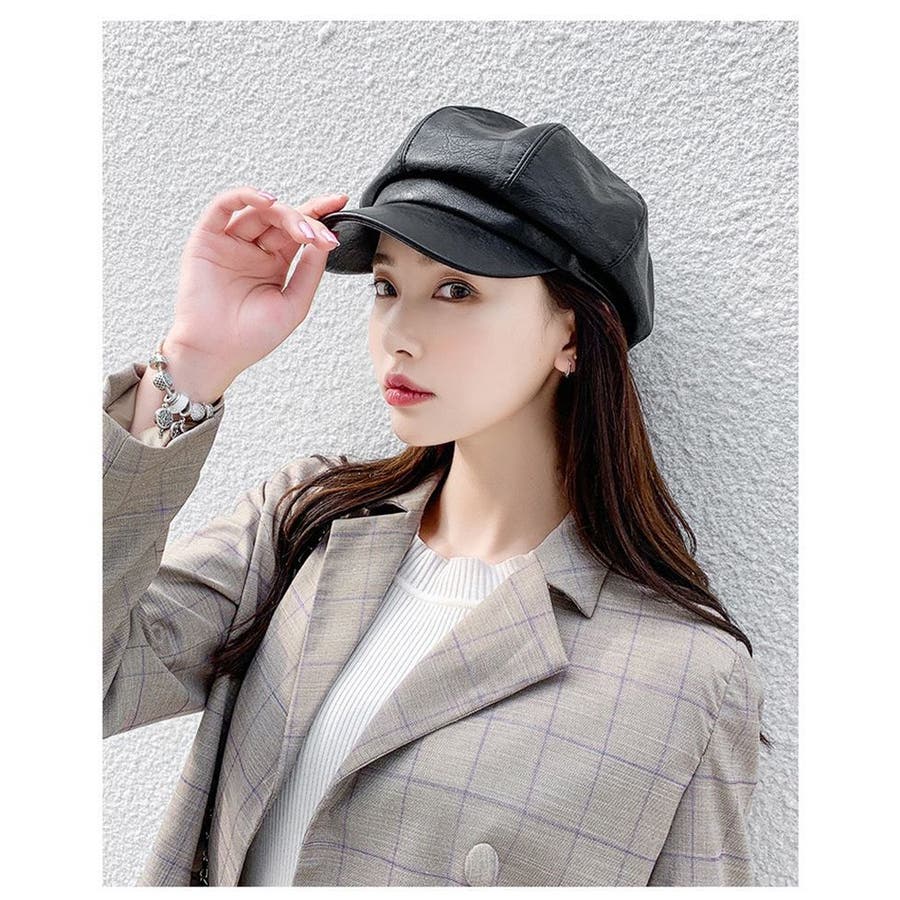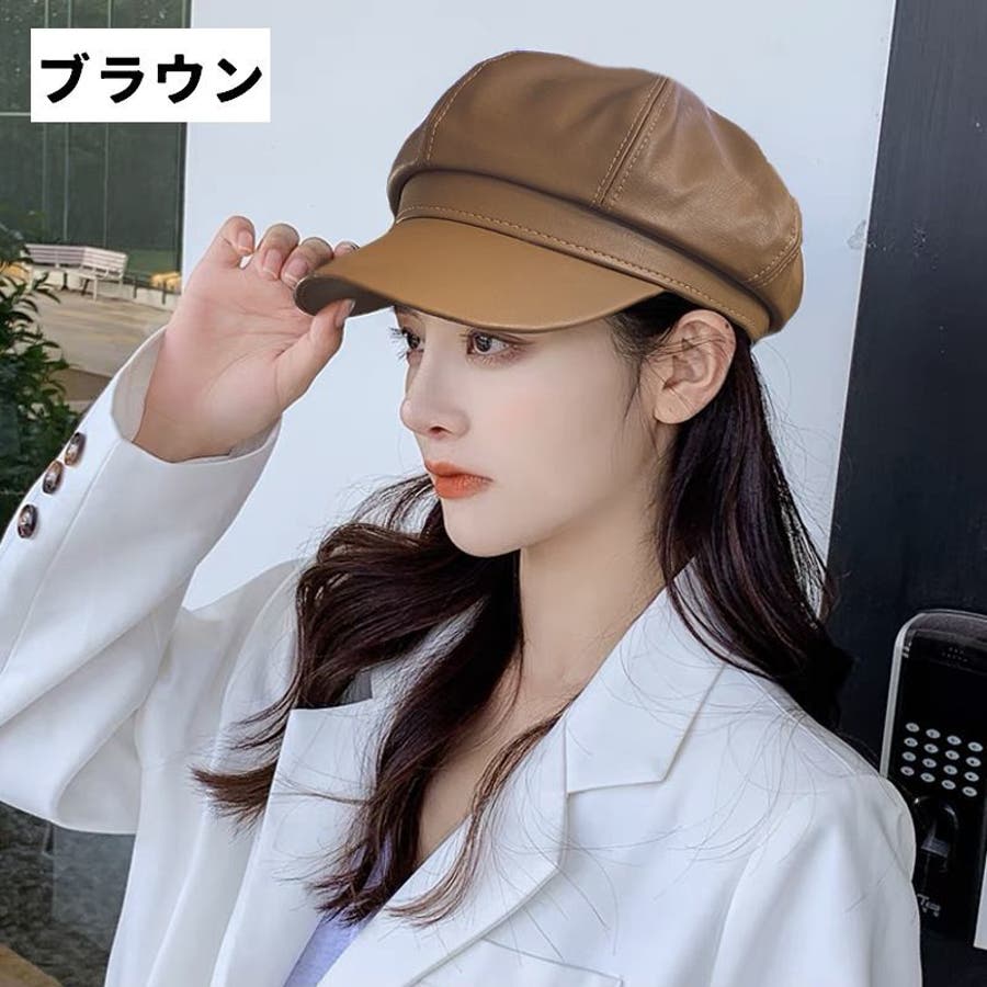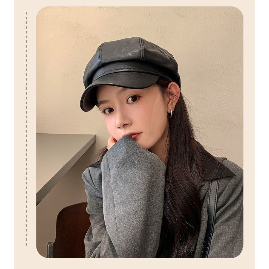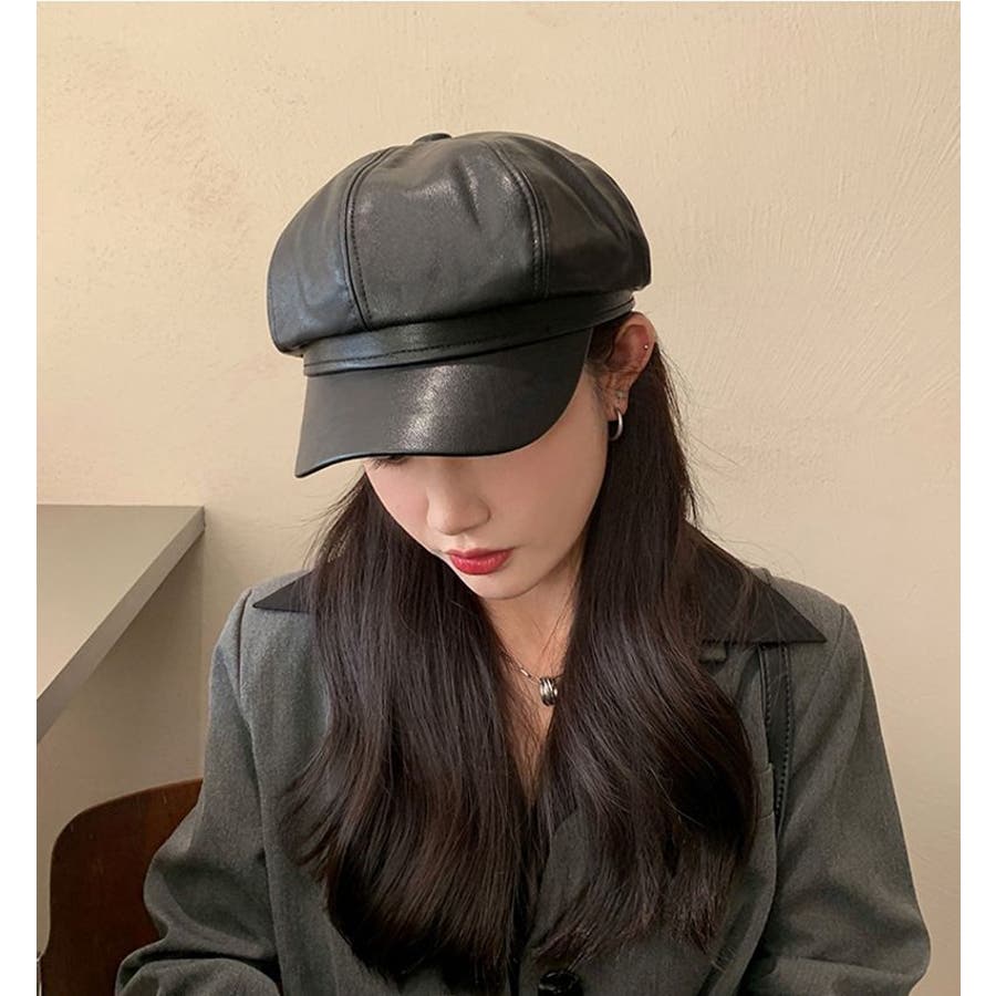 レザー調がカッコいいレディース用キャスケットです。