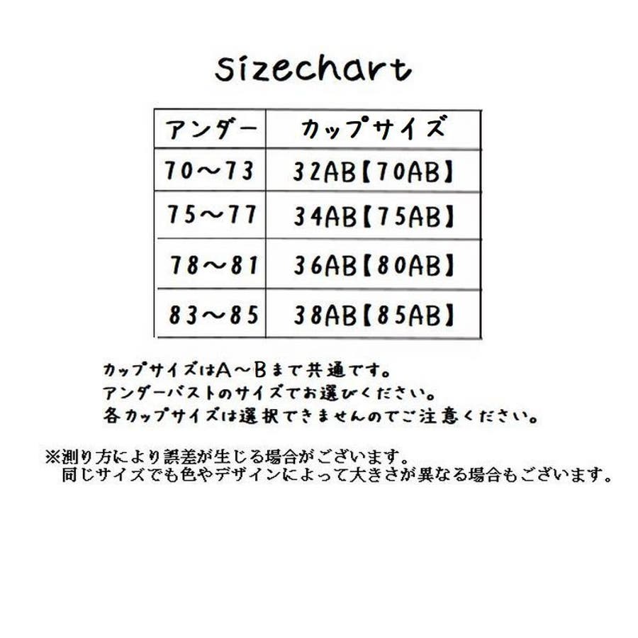 | サイズ | 32AB【70AB】 / 34AB【75AB】 / 36AB【80AB】 / 38AB【85AB】 |