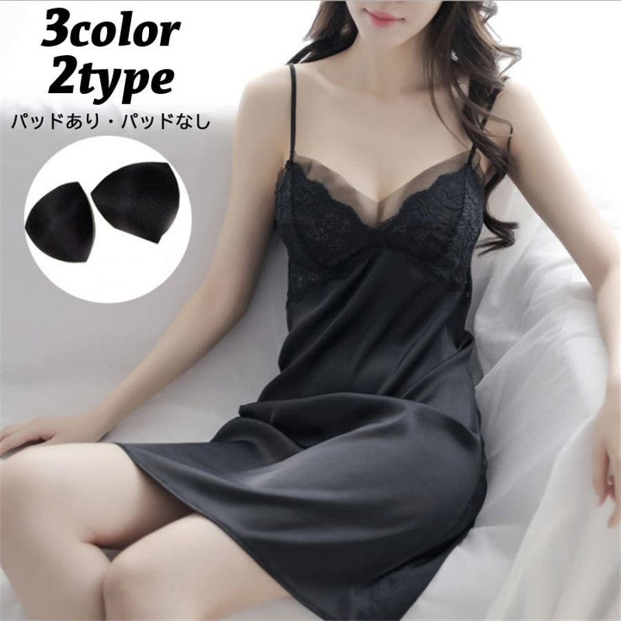 【ブラック×パッド無し】スリップ キャミソール ランジェリー