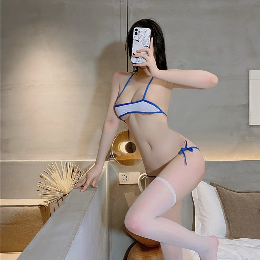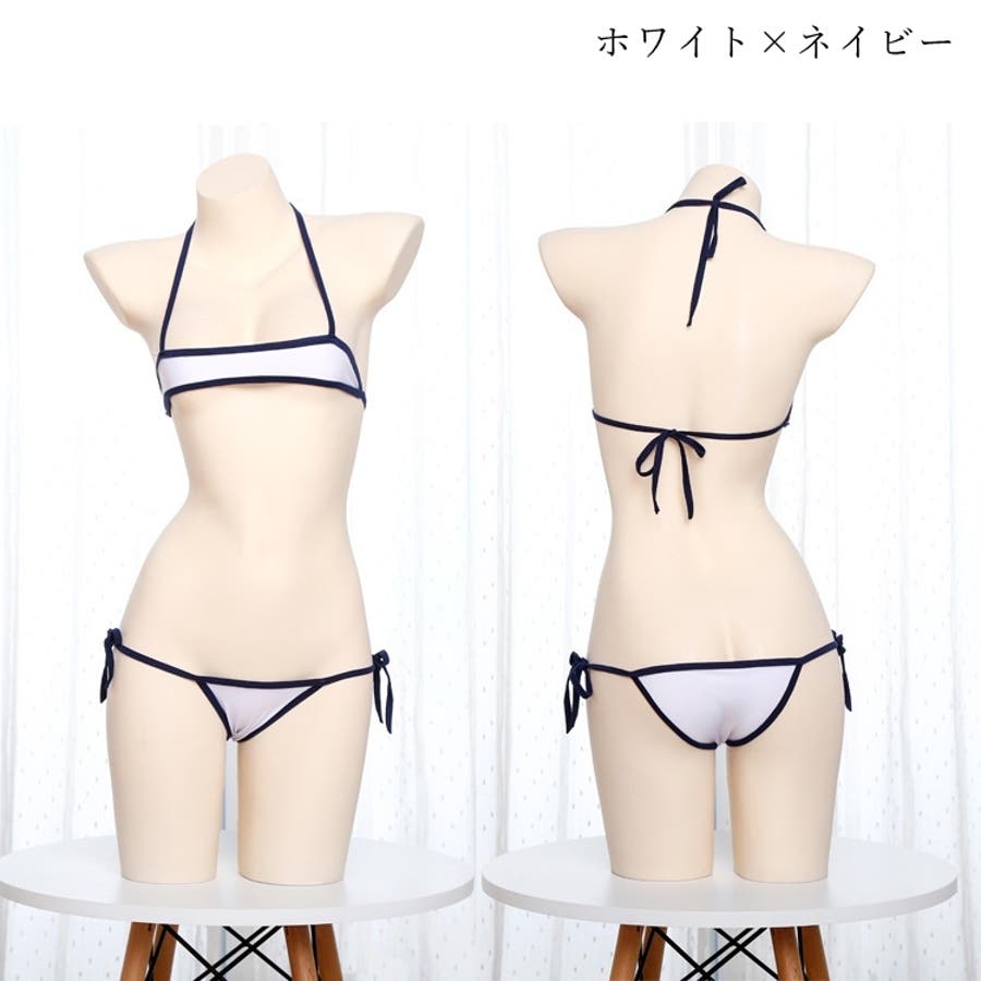 【ホワイト×ブラック】ブラジャー ヒップハンガーショーツ 紐ブラ
