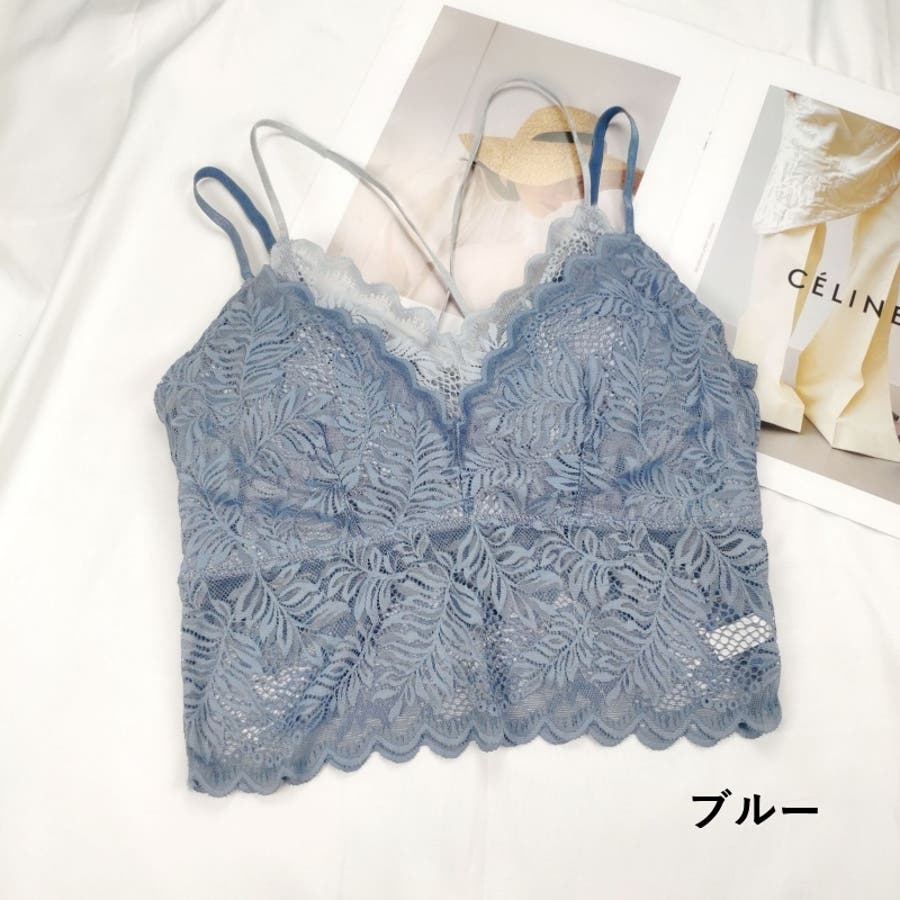 爽やかなブルーが気に入ってリピート買いです!デザインが素敵なので肩から見えても大丈夫なのが良いです。敏感肌ですがレースもチクチクしませんでした。オススメです。