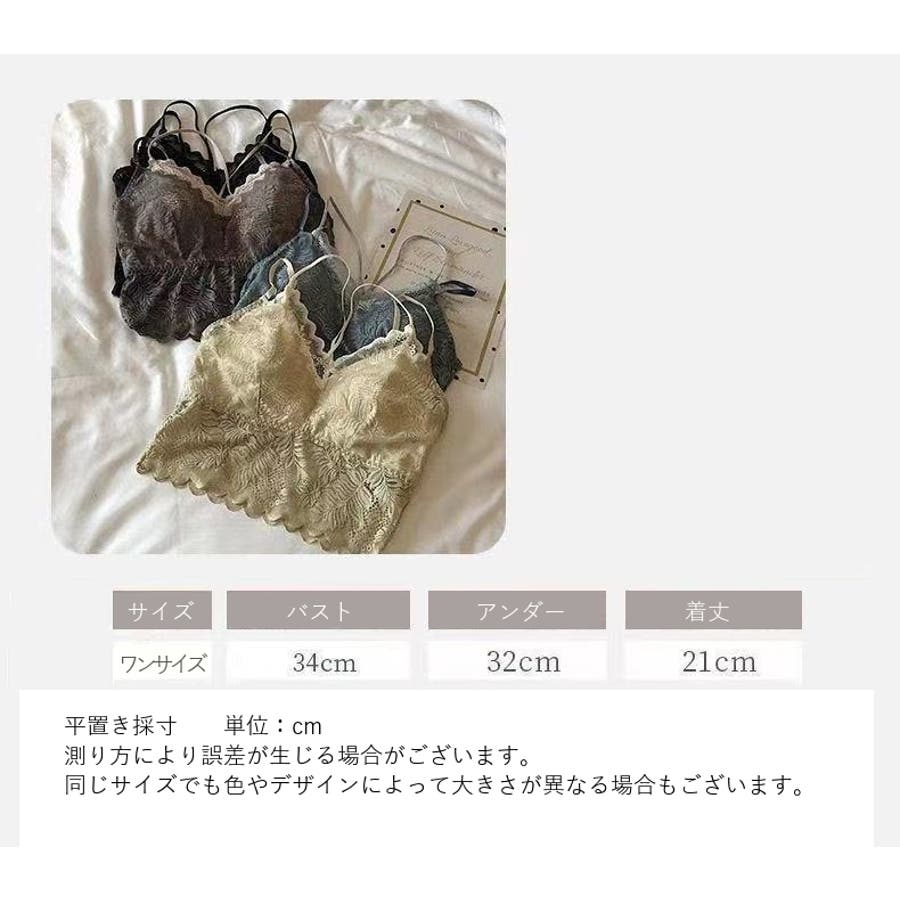 投稿日:2022.07.19敏感肌ですがレースがチクチクすることもなく、見えてもオシャレなのでリピート購入。紐が多く少し着るのが大変なのも気になりませんでした。タグにはサイズLと記載がありました。