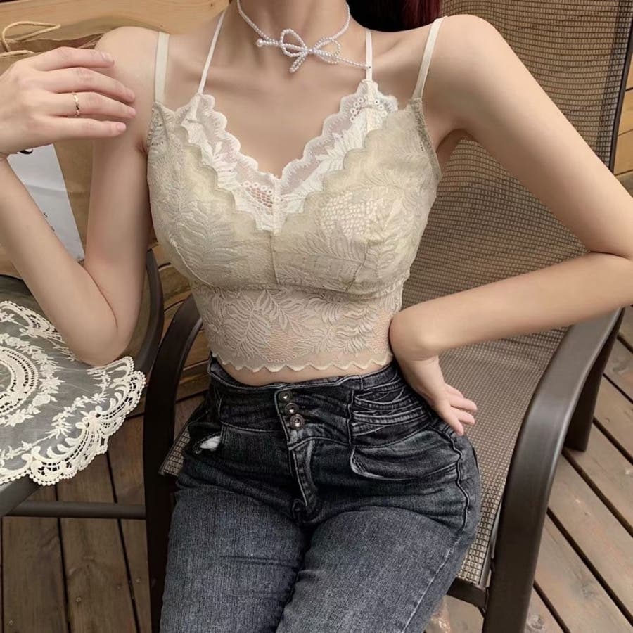 ちょっと透けるシャツの下に着てもかわいいし、丈の短いトップスの下に着たら腕を上げた時にレースが見えてかわいい。