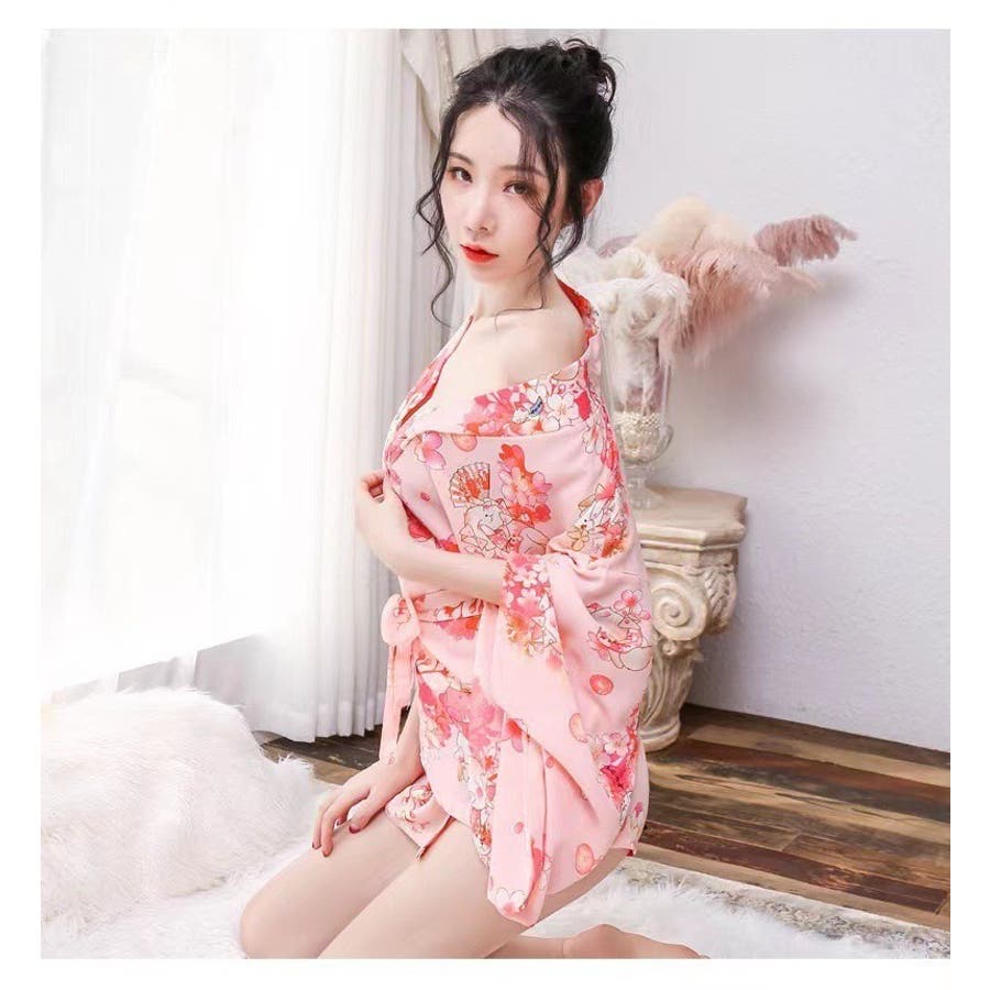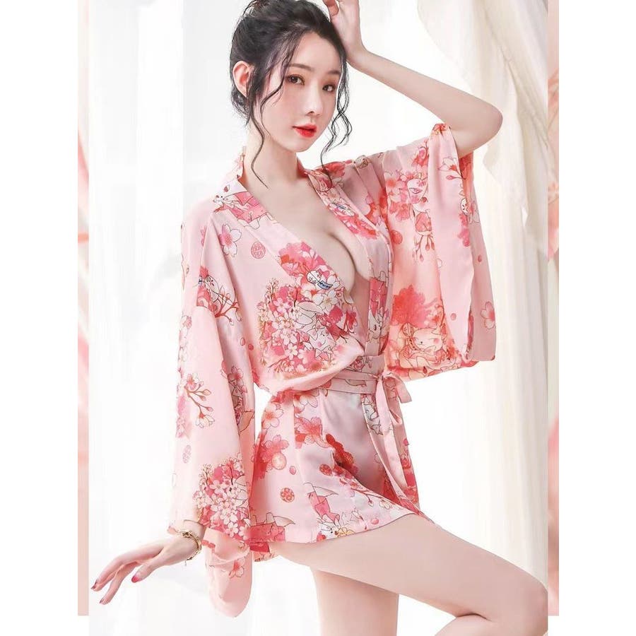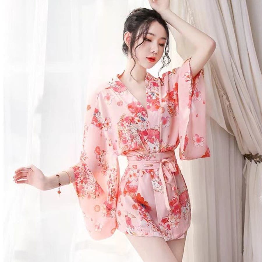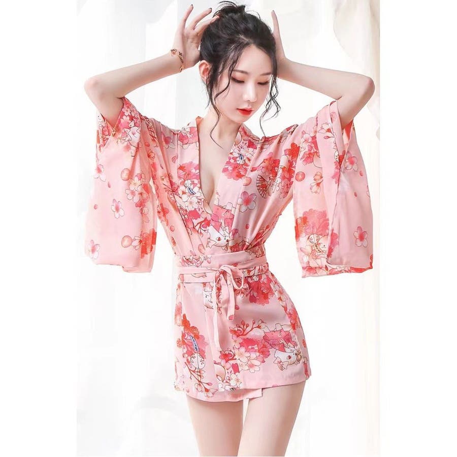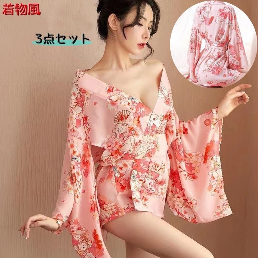 着物風の羽織タイプのナイトガウンとTバックショーツとベルトがセットです。